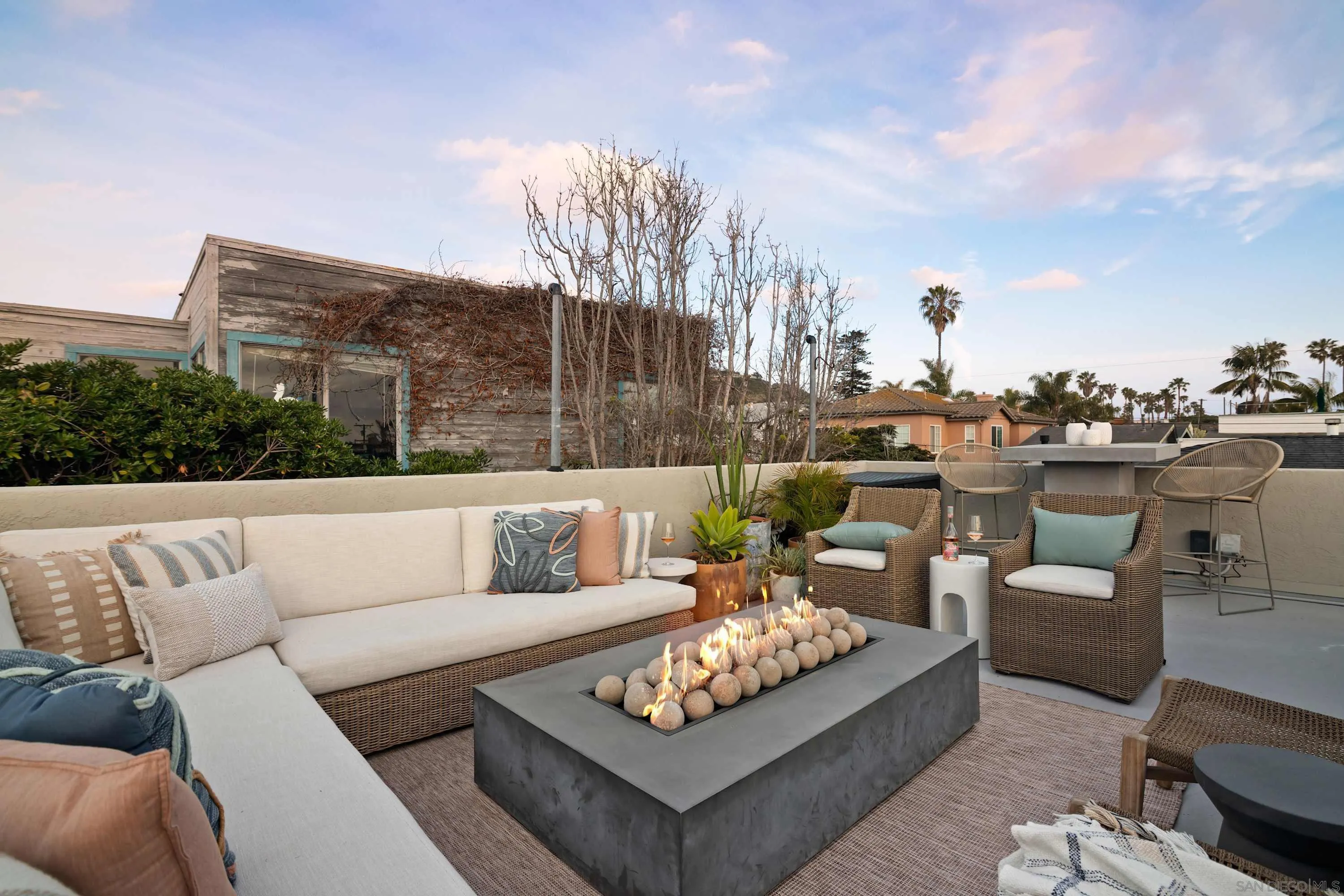 FURNISHED MIDTERM & LONG-TERM RENTAL — Nantucket-Style Beach Home w/ Ocean Views & Rooftop Deck Experience coastal luxury in this Nantucket-inspired 3BR / 3.5BA home, just a half block from iconic Windansea Beach. High-end custom finishes, ocean views, and multiple outdoor spaces create an elevated La Jolla retreat. Enter through a vine-covered archway to a private front patio with fire pit and lush seating. The living room features a stone fireplace, large TV, and bi-fold French doors that open to seamless indoor/outdoor living. Gourmet kitchen includes Wolf appliances, Miele dishwasher, quartzite island with bar seating, and adjacent dining area. Back patio offers built-in BBQ, mini fridge, heaters, and outdoor dining. Upstairs, three serene bedrooms include a west-facing primary suite with sunset views and lounge area. Spa-like bathrooms feature a steam shower and soaking tub. The expansive rooftop deck showcases panoramic ocean vistas, fire pit seating, and unforgettable sunsets. Additional perks: outdoor shower, washer/dryer, two-car garage, and mini-split A/C. Sleeping Setup (max 6): BR1 King • BR2 Queen • BR3 Full 3.5 Baths Available fully furnished only. Rates reflect short-term rental pricing and vary by season and duration. Published amounts are estimates; final pricing, fees, and availability are subject to change until a signed agreement. Please inquire for an exact quote.