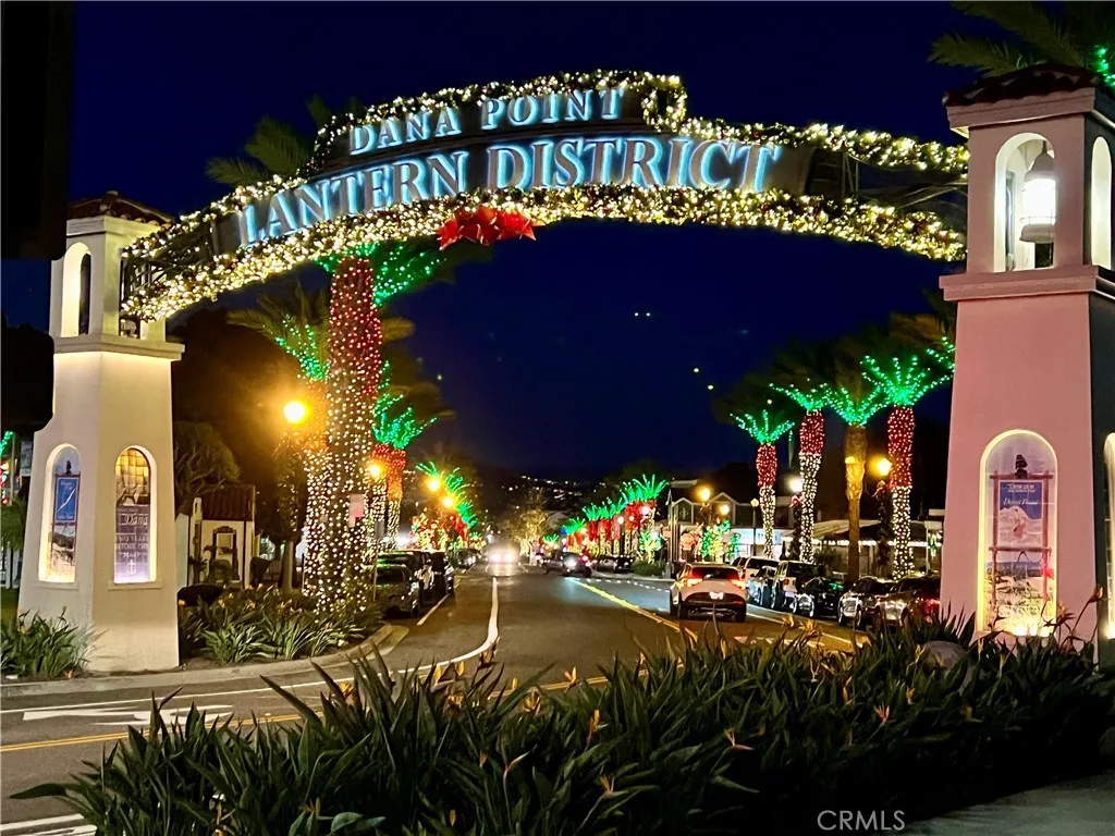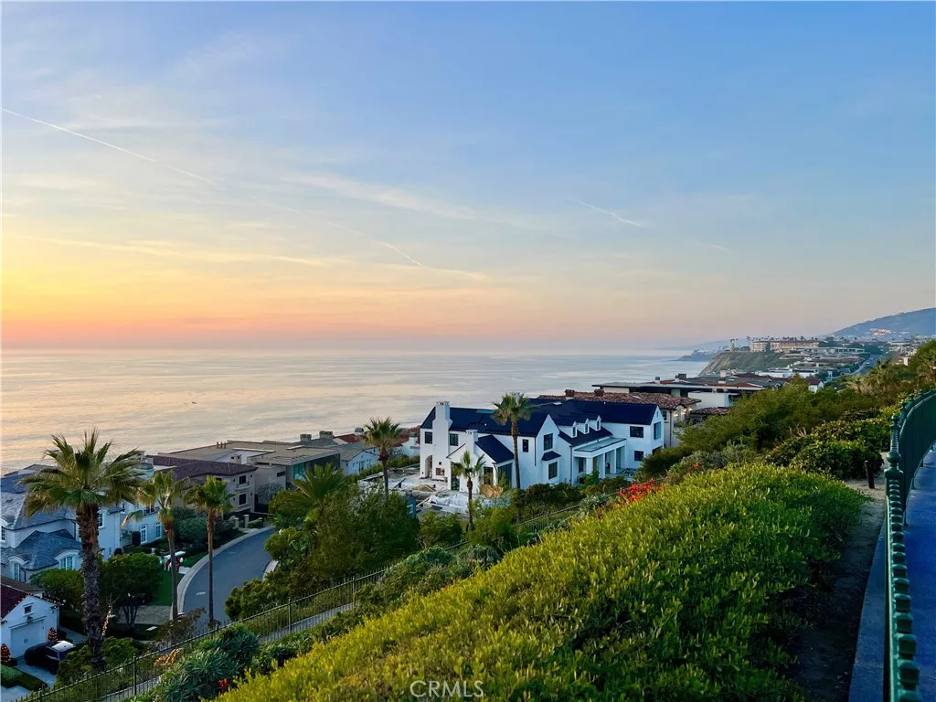 Located in beautiful Dana Point's Niguel Beach Terrace, on the ocean-side of PCH, right across from world class Strands Beach is this coastal inspired sought after upper level corner unit with vaulted ceilings set next to a tree covered greenbelt park. Gracious open layout floor-plan with wood-like hard surface flooring throughout. Tall sliding glass doors open to a delightful private balcony both from the living room as well as the bedroom to enjoy the pleasant indoor/outdoor lifestyle. Kitchen has sunny window with greenbelt view behind the sink to view out while preparing meals and washing up. Kitchen is equipped with a 4 burner electric cooktop, vented hood, oven, dishwasher, refrigerator, and breakfast bar. Dining area has a breezy beachy themed ceiling fan lighting fixture. Double doors lead into the private bedroom with vaulted ceiling, 2 closets, and bathroom with vanity lighting and tub shower combination. Additional storage in coat closet near entryway and in-unit laundry closet on balcony. 1 parking spot is assigned and guest parking is first come. EV charging stations onsite. Niguel Beach Terrace provides 2 spa's, a pool, and clubhouse. Walk across the street to view fantastic sunsets with friends and neighbors, bring your coffee cup to gaze at the Pacific in the morning, go down the stairs to have a run on the sand or enjoy relaxing beach days. Walking distance to chic restaurants and shopping in the Lantern District, historic Headlands Preserve Trail, Dana Point Harbor, Monarch Beach Golf Links, Waldorf Astoria Resort, Ritz Carlton Laguna Niguel, and easy acce