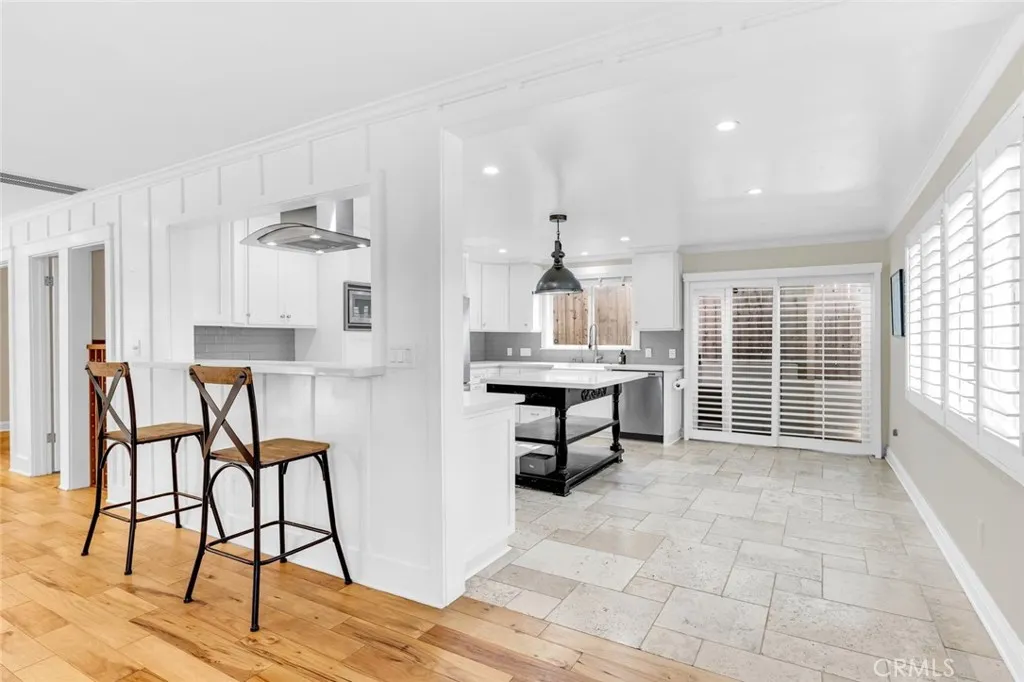 Welcome to elevated coastal living in the heart of Dana Points Lantern District one of Southern Californias most coveted seaside enclaves. Lovingly upgraded and impeccably maintained, this residence is move-in ready, offering a sophisticated blend of comfort, style, and nautical elegance. The spacious kitchen is a sleek, chef-inspired centerpiece featuring crisp white cabinetry, Caesarstone countertops, travertine flooring, stainless steel appliances, and a generous island ideal for entertaining or relaxed family gatherings. The open living and dining areas flow effortlessly, highlighted by distressed hardwood floors, plantation shutters, a custom staircase, and a stacked-stone fireplace that evokes warm coastal character. French doors welcome the ocean breeze and create a seamless connection to outdoor living. A private family room offers its own retreat with fireplace, plantation shutters, and balcony, while the main level also includes a bedroom and full bathroom with mirrored wardrobe space and thoughtful design details. The bathroom is beautifully finished with marble counters and a custom shower/tub surround, reflecting careful attention to both style and function. Upstairs, the Primary Suite is a sanctuary of coastal sophistication. High ceilings and sliding wood closet doors with custom organizers balance elegance and practicality. The fully remodeled Primary Bath is a showpiece, featuring a sliding barn door entry, an oversized soaking tub with LED lighting and hydrotherapy jets, and an open-concept walk-in shower accented by a striking backsplash delivering spa-