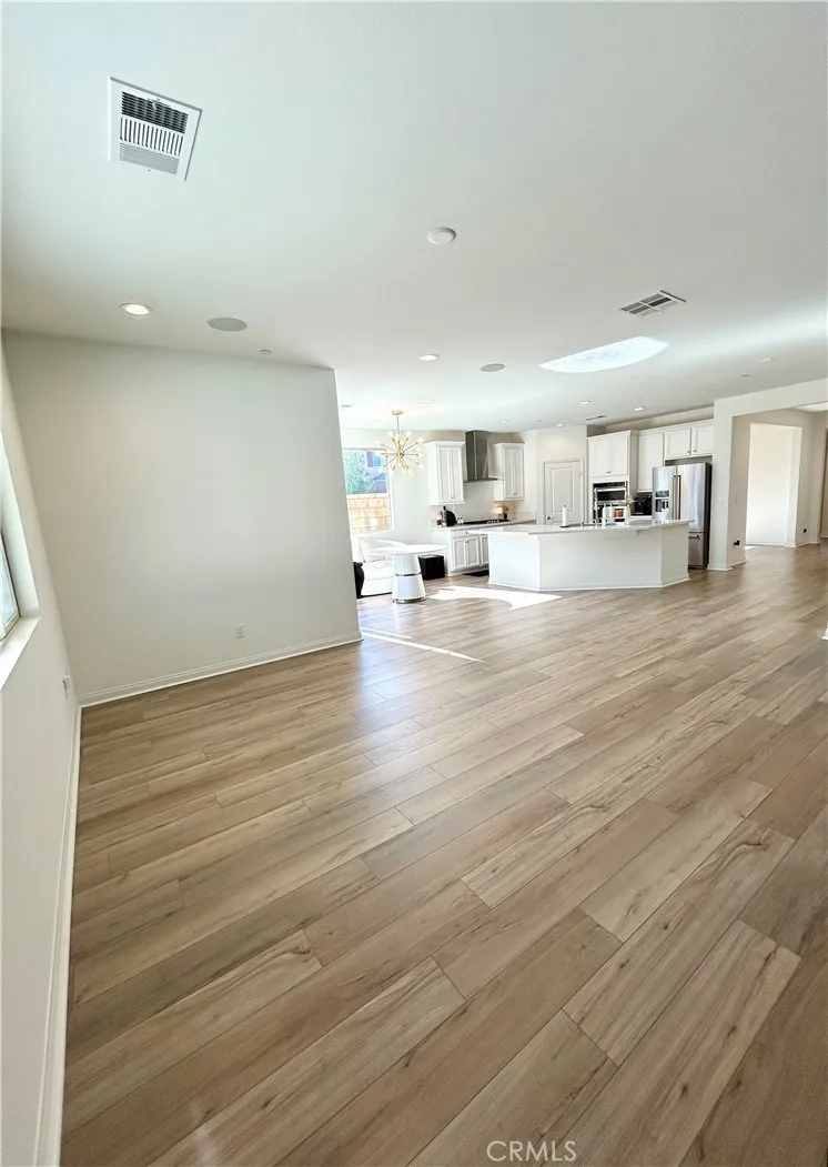 Welcome to this exquisitely upgraded 3-bedroom, 2-bath residence offering just under 2,000 square feet of thoughtfully designed living space in the prestigious Spencers Crossing community. Surrounded by scenic hiking trails, beautifully maintained parks, and outdoor recreation. Upon entering, youre greeted by elegant luxury vinyl flooring that flows seamlessly through the main living areas, while the bedrooms feature plush carpeting for ultimate comfort. The open-concept gourmet kitchen is a standout, showcasing upgraded countertops, a Whirlpool 36-inch cooktop oven, an oversized designer sink with a MOEN faucet, and a KitchenAid refrigeratorperfectly appointed for both elevated entertaining and everyday living. additional upscale features include a built-in surround sound system in the living room and a soft water plumbing loop for enhanced efficiency and comfort. Ideally located just minutes from Old Town Temecula, renowned Wine Country, premier shopping and dining, and Pechanga Resort & Casino, this home offers both luxury and convenience. Home also features a large backyard with an existing patio, providing the perfect foundation to imagine and build your ideal outdoor retreat.