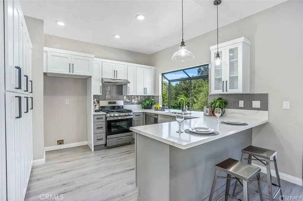This stunningly renovated upstairs end unit is a rare gem, offering breathtaking views of the golf course, lush greenbelt, and sparkling pool. Every inch of this home has been meticulously upgraded, featuring 10-ft ceilings, an open-concept layout, a striking stacked-stone fireplace, and stately LVP flooring throughout. The chefs kitchen is a dream come true, boasting gorgeous quartz countertops, new stainless steel appliances, two-tone shaker cabinetry, and a spacious peninsula with island seatingperfect for entertaining. The primary suite is a private retreat, fully remodeled to perfection with a luxurious oversized shower, dual quartz vanity, three generous closets, and mesmerizing views. A secondary bedroom, adorned with beautiful wainscoting, is accompanied by an oversized bathroom and a thoughtfully designed laundry room with ample storage. Additional upgrades include: a new LG refrigerator, LG washer and dryer, a modern crushed-glass fireplace, a high-efficiency AC system, custom window coverings, LED lighting, ceiling fan, and one detached garage with built-in storage cabinets and a full driveway for one additional car. Located in the centrally located Fairway Oaks tract, this move-in-ready home offers access to a resort-style pool and spa while embracing the exclusive Coto de Caza lifestyle. Enjoy award-winning schools, the renowned Golf & Racquet Club, scenic sports parks, and miles of hiking, biking, and equestrian trails as well as the Coto Pickleball Cluball just moments from your doorstep. This is a once-in-a-lifetime opportunity to rent an exceptional propert