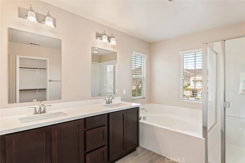 Beautiful Resort style home for you to enjoy! Tucked in a serene cul-de-sac, this impeccably maintained Canyon Hill home features an open floor plan bathed in nature light. The 4 bedrooms/ 3 bathrooms residence showcases a gourmet kitchen with granite countertops and new stainless steel appliances. New hardwood floors and fresh paint create a warm, inviting atmosphere throughout. The expansive master suite, complete with dual vanity, offers luxurious retreat. The beautifully landscaped backyard, with artificial turf , a mini-golf putting area, and a spacious concrete patio, is perfect for outdoor entertaining. Located near the highly sought-after Herk Bouris elementary school, the award-winning Canyon Hills master planned community offers three community pools, spa, splash pad and two parks --including a sports park ---and a convenient shopping plaza.