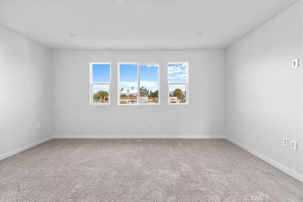 Welcome to Sagecrest by Century Communities! This beautiful Tri-level Gated townhome community is located in the heart of Riverside close by the 91 freeway right off Van Buren Blvd. very close to shopping, restaurants and California Baptist University as well as UC Riverside. After walking through your private patio, you will enter to the first floor you will find a jr. suite with its own walk-in closet and full bathroom. Heading up to the second floor you enter a spacious Kitchen with a large island and dining area open to living room which has a large private balcony with city views. The kitchen features " Aria Stone Gray" cabinets, quartz counters and a stylish backsplash. The second level also includes a bedroom and full bathroom. Going up to the third level you will find a spacious Owner's Suite which includes large bathroom with double sinks, walk-in shower and walk-in closet. Finishing the 3rd level there's an additional bedroom with its own private bathroom and walk-in closet. Laundry room is also on third level. Come see this amazing community, Sagecrest is a Gated Community and will include a playground, dog park, shade structures and BBQs and more!