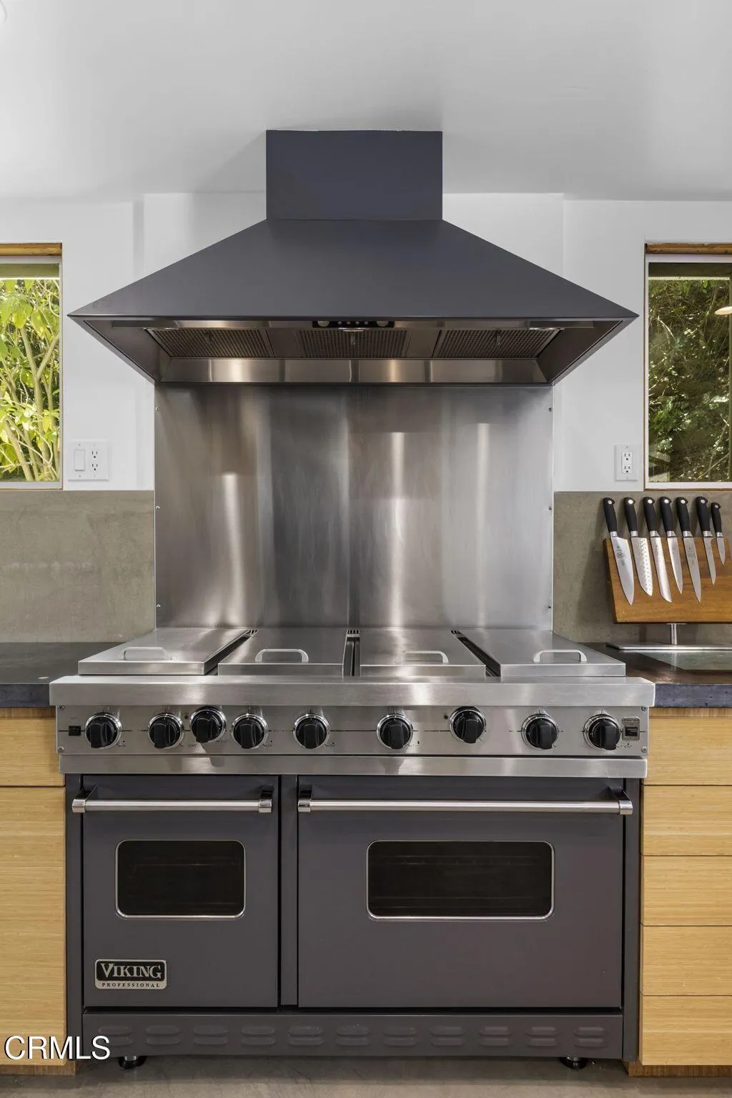 Nestled on Lower Dixie Canyon 6 minutes from Harvard Westlake HighSchool and 15 minutes from HW Middle School, this light-filled multi-level home sits on a unique triangular lot surrounded by natural forested land with no direct neighbors to the south or west--offering exceptional privacy and serenity.Thoughtfully designed half-levels and spacious landings create a comfortable flow throughout. The main living room on the second floor features soaring 10' ceilings and a custom fireplace, opening seamlessly to a tranquil backyard patio.The industrial-style kitchen and dining area showcase polished concrete floors, custom in-laid concrete counters, bamboo cabinetry, and a large pantry. A Viking range and glass-front Sub-Zero refrigerator complete the space, all framed by hillside nature views that add an artful, chic atmosphere.The private top-floor primary suite offers a walk-in closet and a luxurious 'wet room' bath with heated floors and towel rack. The second bedroom on the main level overlooks the patio and hillside from its private balcony and includes built-in shelving, ideal as a bedroom, home office, or gym. A third bedroom on the entry level features a 3/4 bath and laundry area.Additional amenities include an alarm system with cameras, soft water system, ample storage, and a two-car attached garage with an electric vehicle charger. Landscaping maintenance is included.Lease terms are negotiable. Offered furnished or unfurnished. Pets ok.
