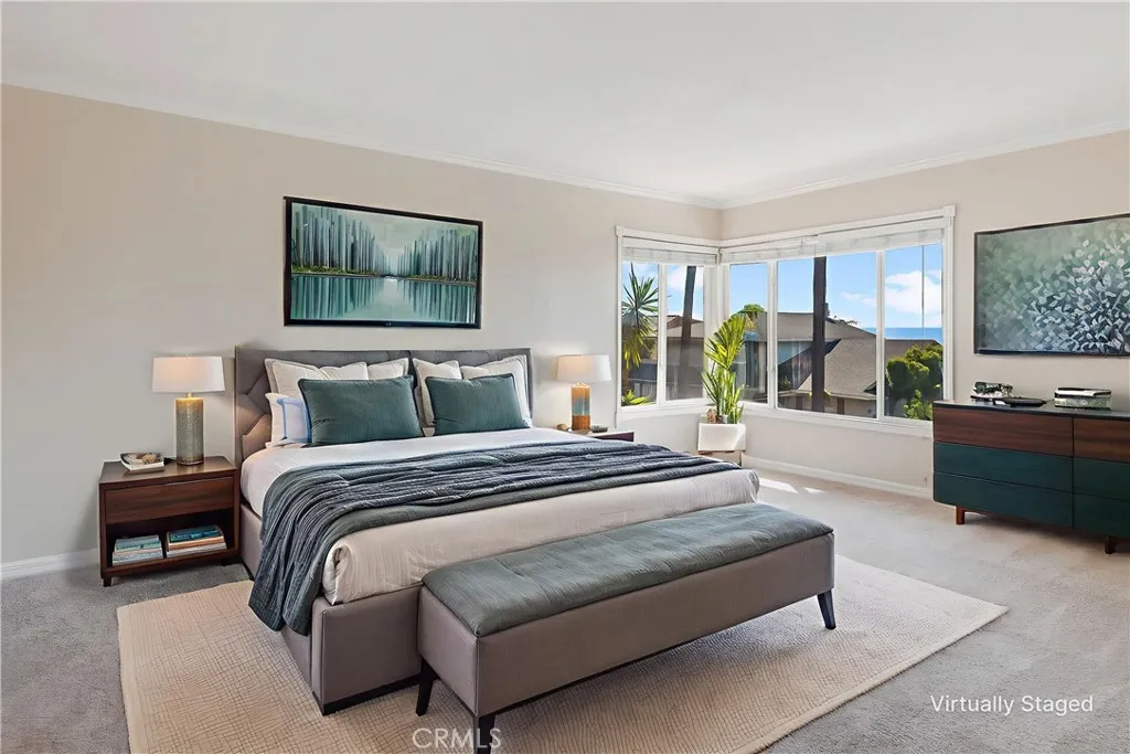 Nestled on a quiet cul-de-sac street, this beautifully maintained home offers a perfect blend of elegance, comfort, and stunning ocean and Catalina views. With 2,115 square feet of living space, the residence features 4 bedrooms, including a spacious primary suite, and 2.5 baths. The home boasts soaring 10-foot ceilings, crown moldings, and recessed lighting throughout, creating a bright and airy atmosphere. Recent upgrades include plush new carpeting and stylish laminate flooring. The living room features an inviting gas fireplace and multiple sliding doors that seamlessly connect to indoor and outdoor living spaces, ideal for entertaining and relaxation. The gourmet kitchen showcases dark brown cabinetry, high-end appliances, and a charming breakfast area, perfect for casual dining. Step outside to a large, private side yard with decks designed for outdoor dining, conversation, and unwinding while enjoying breathtaking ocean and Catalina views from the upper level. Additional highlights include a two-car garage with a dedicated storage room (eliminating the need for a bulky storage locker). This exceptional property offers multiple outdoor living options, a spacious lot, and a prime locationmaking it an ideal coastal retreat.