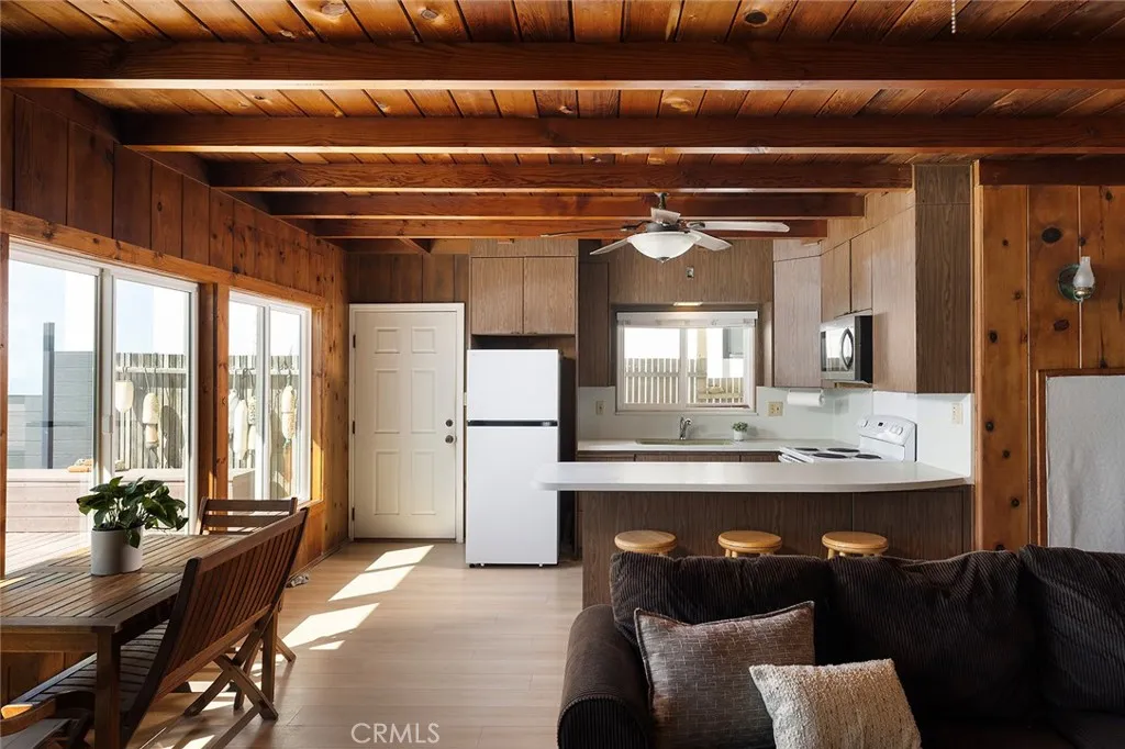 Where classic California lives forever by the sea. Preserved with care and perched directly on the sand, this mid-century beach cottage along Dana Points guard-gated Beach Road offers a glimpse into coastal living as it was meant to besimple, soulful, and endlessly relaxing. Behind the seawall and the sound of the surf, original details tell the story of the homes 1940s heritage: beamed wood ceilings, paneled walls, and a breezy open layout that connects every moment to the ocean just beyond the deck. Wide windows frame Catalina views, while natural light drifts across warm laminate floors and a palette that feels both nostalgic and current. Three bedrooms and two baths unfold on a single level, offering effortless flow from morning coffee to sunset gatherings. The kitchen remains open to the main living areawhere family, friends, and salty air naturally converge. Step outside to the expansive deck and watch the tide roll in from your private stretch of sandyour front-row seat to dolphins, color-soaked skies, and the rhythm of coastal life. Situated halfway between Los Angeles and San Diegobut a world awayBeach Road offers a level of privacy and tranquility rarely found along the Southern California coast. Unobstructed front-row views focus on breaking waves and the azure Pacific Ocean, while Catalina Island, city lights, San Clementes pier, and Dana Points rugged Headlands draw the eye up and down the shore. Homeowners along this exclusive stretch own to the median high-tide line, creating an unmatched connection to the sand and sea. With a single-car garage and four-car p
