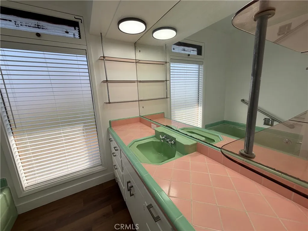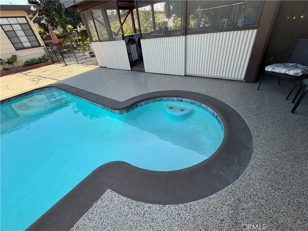MID-CENTURY POOL HOME WITH BASEMENT - Welcome to this 1947 mid-century charmer that blends timeless character with thoughtful updates. This 3-bedroom, 2-bath home offers incredible architectural details, a finished basement, and a resort-style backyard with pool and spa. Freshly painted throughout, the home retains its original mid-century vibe with hardwood flooring, floor-to-ceiling windows overlooking the pool, and a classic fireplace mantel anchoring the spacious living room. Pocket doors lead to a separate formal dining room featuring built-in cabinetry perfect for displaying your favorite pieces. The updated kitchen includes a stove range, microwave, vinyl flooring, freshly painted cabinetry with new hardware, and pull-out drawers. A cozy breakfast nook just off the kitchen offers serene garden and pool viewsperfect for your morning coffee. Each bedroom features custom-built closets that honor the homes mid-century style, along with additional hallway storage cabinets. The front bedroom includes a charming built-in vanity and mirror. The primary suite showcases original wood flooring, ceiling fan, custom closet with pull-out drawers, and direct access to the side yard via sliding glass door with ramp access. The primary bath offers dual vanities and a spacious walk-in shower. The hallway bathroom maintains its original pink tile vanity, separate soaking tub, and walk-in showertrue vintage charm. Just off the dining room, step down into a finished basement complete with a built-in barideal for entertaining, game nights, or a media room. Floor-to-ceiling cabinetry provi