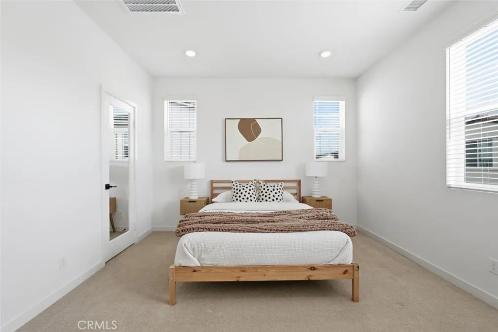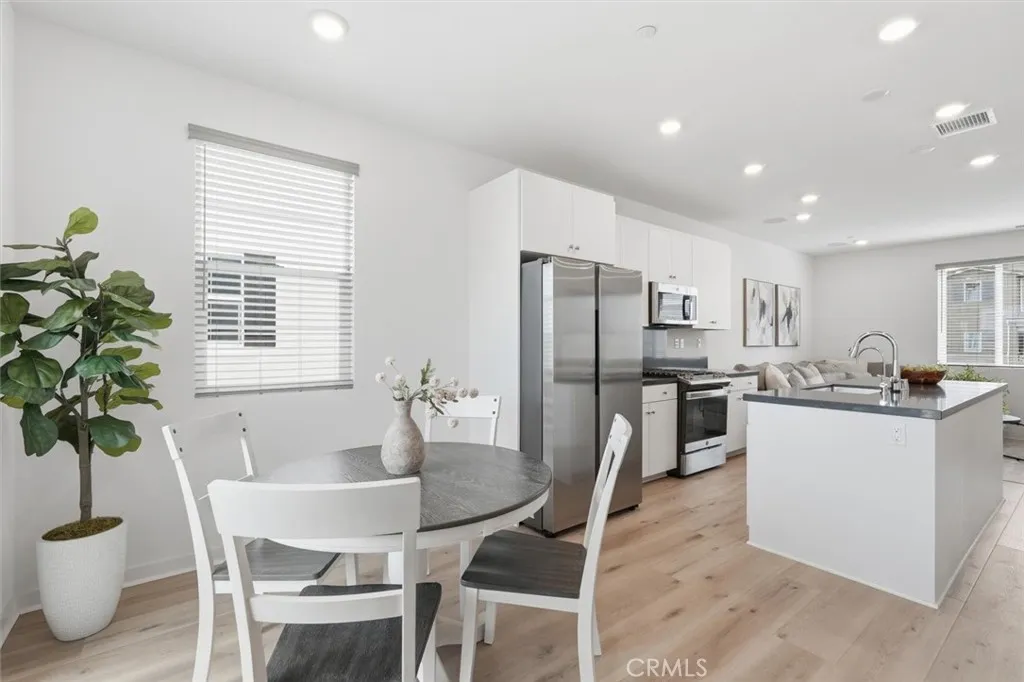 VIEWS, VIEWS, and VIEWS for days!! Welcome to Plan 1 in the newest village of Rienda, built in 2023 by Tri Pointe Homes. Offering 1,414 square feet, 2 bedrooms, 3 bathrooms, and a versatile flex space ideal for a home office or guest retreat, this thoughtfully designed home blends function with elevated style. As you enter, youre greeted by clean lines, high ceilings and beautiful luxury vinyl plank flooring, with the flex space perfectly positioned on the first level. Upstairs, the main living area is bright and open, featuring black quartz countertops, white cabinets, a seamless kitchen-to-dining flow, and a private balcony showcasing some of the best views in the neighborhood overlooking Ranch Camp, the lagoon pool, community horses, rolling hills, preserved open space, and breathtaking sunsets. The third level offers two bedrooms, each with walk-in closets, including a primary suite with step-in shower, plus conveniently located laundry. Smart home features (thermostat, keyless entry, garage, lighting) and owned solar provide modern comfort and long-term savings. One of Riendas lowest HOA dues grants access to all of Rancho Mission Viejos award-winning amenities Ranch Camp, the 24-hour fitness center, resort-style pools, Boulder Pond, scenic trails, fire pits, barbecues, community events, and ranch rides. Zoned for Esencia Elementary K-8 School, get ready for Riendas own neighborhood elementary school planned for completion in 2027, Tesoro High School serving high school students, and Montessori options in Esencia. With its large front yard for entertaining, side yard