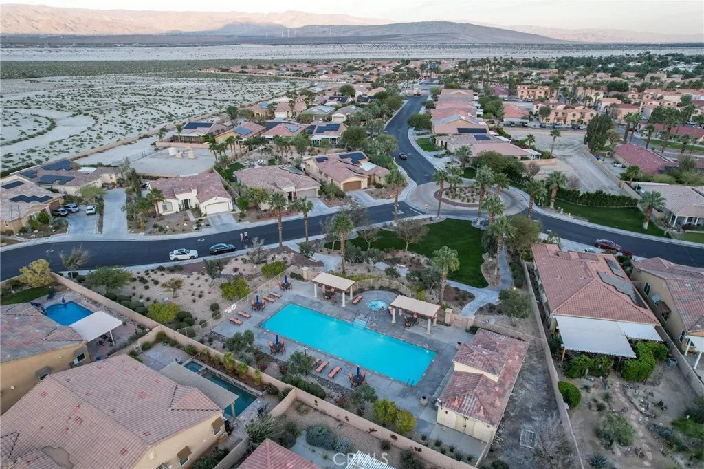 Discover serene desert living in this single-family residence located within a private gated 55+ community. This home is situated on a quiet corner lot and features low-maintenance desert landscaping with breathtaking mountain views. Inside, the inviting open floor plan is defined by elegant arched corridors and durable tile flooring throughout the living areas. The main living and dining space offers a cozy corner fireplace, perfect for everyday comfort. The functional kitchen features white cabinetry, a large center island, and Whirlpool appliances. The layout includes a third bedroom with a large arched window, serving as an ideal home office. The primary suite provides a private retreat with dual vanities, a separate soaking tub and shower, and two spacious walk-in closets. Outdoor living is simplified with a spacious concrete backyard and a covered patio for shaded relaxation. Residents enjoy access to a community pool and spa, and the community grounds are beautifully landscaped and well-maintained. Additional features include a dedicated laundry room with a utility sink and a finished 2-car garage. Recent updates include a new HVAC system, water heater, and garage door with motor, offering added peace of mind for years to come. This move-in-ready property is where low-maintenance living and resort-style comfort finally come together.