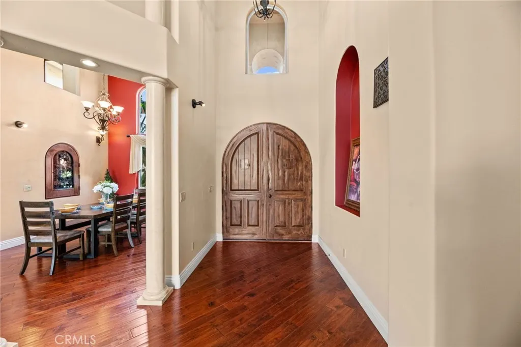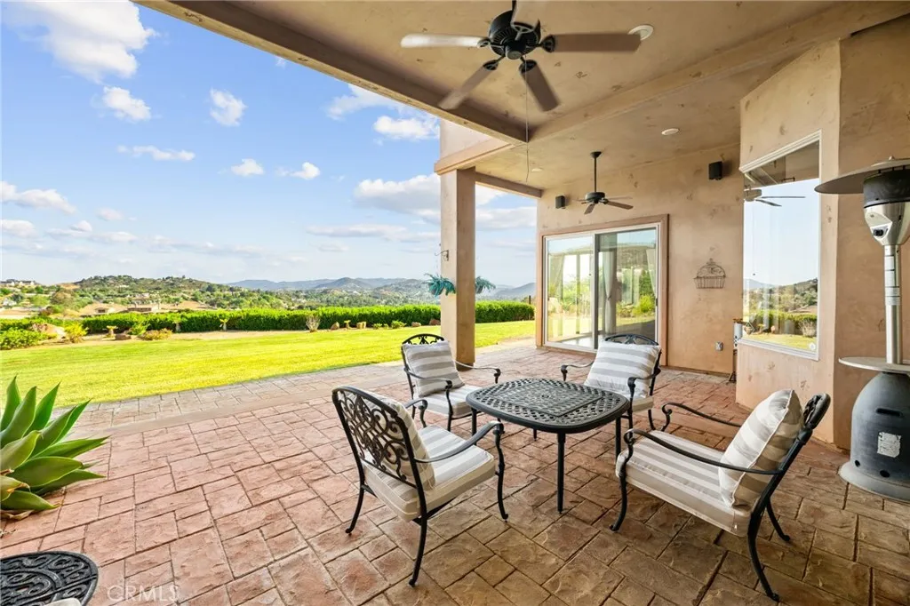 Welcome to your hilltop haven in the heart of La Crestawhere privacy, natural beauty, and sustainable luxury come together on five peaceful, sun-soaked acres. This gated Tuscan-inspired estate feels like a tranquil getaway, offering timeless architecture, modern amenities, and the freedom to live life on your terms. Thoughtfully designed to blend comfort with elegance, this custom-built home lives like a single story, with the spacious primary suite located on the main level. Inside, youre greeted by a dramatic grand entry, soaring ceilings, solid mahogany doors, and an expansive layout featuring hardwood and travertine floors. A private elevator connects all levels of the home, offering accessibility and ease for all ages and stages of life. The gourmet kitchen features custom granite countertops and opens seamlessly to the living and dining spacesideal for entertaining or simply enjoying quiet evenings at home. Cozy up beside one of the three fireplaces, or step out onto one of the 1,500+ square feet of view decks to enjoy the soft breeze and mountain air. Wine lovers will delight in the 500-bottle, temperature-controlled wine cellar, easily accessed from the formal dining area or the garage. And for those who crave connection to the land, this estate is truly a dream come true. A private vineyard of mature Syrah grapes, 50 fruit-bearing olive trees lining the drive, and additional fruit trees throughout the property create a beautiful and productive landscape. Whether youre tending gardens, growing your own food, or simply enjoying the views, youll appreciate the propert