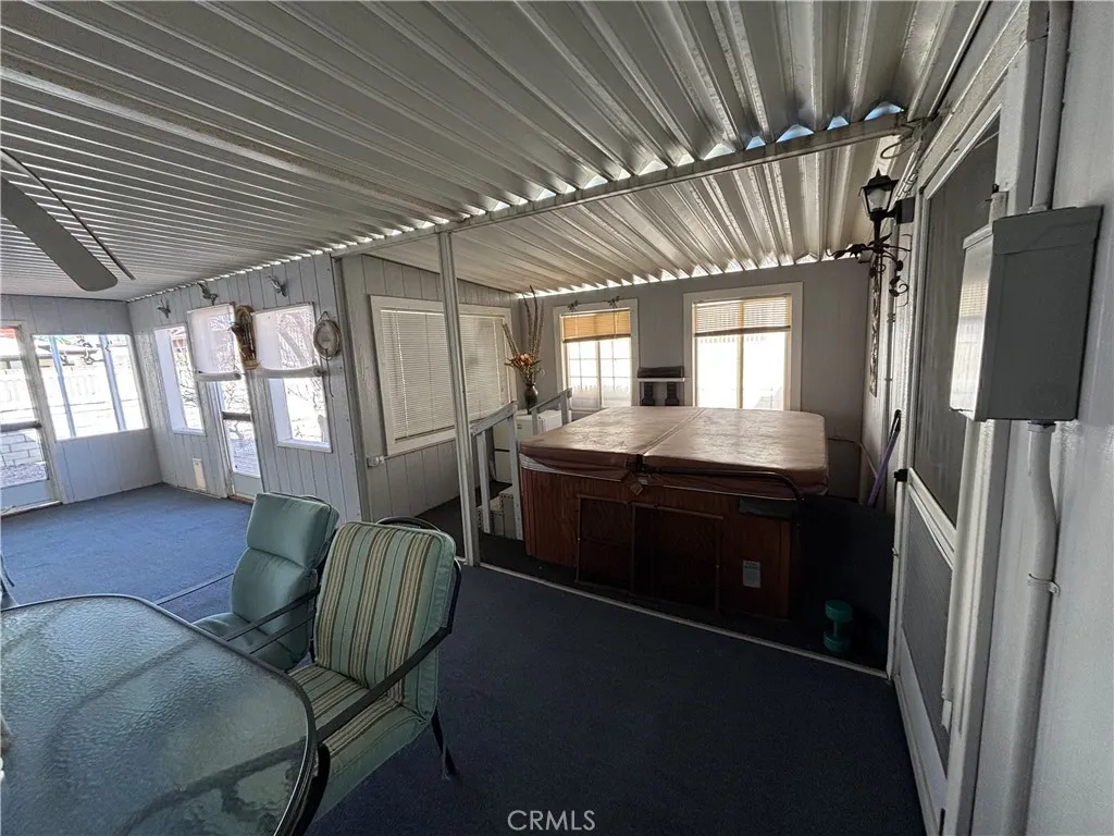 Beautifully cared for 3 bedroom, 2 bath manufactured home located in the highly desirable 55+ Mountain Springs community. This spacious 1,634 sq. ft. home offers an open and inviting floorplan with a large living area, upgraded fireplace, New carpet in master suite, New full interior paint throughout entire home and a bright kitchen perfect for everyday living and entertaining. A bonus enclosed patio room expands your living space and includes a relaxing hot tub perfect for unwinding year-round. The property features a fully fenced yard with fruit trees, ideal for gardening or simply enjoying the outdoors. This home also includes a 2-car attached garage and a large cement driveway, providing ample parking. Mountain Springs is a well-maintained 55+ community offering peaceful surroundings, sports courts, swimming pool and convenient access to local amenities such as shopping, dining, entertainment and doctors. Enjoy the fresh air, scenic views and just a short drive to outlet stores and Palm springs. Dont miss this beautifully cared-for home with upgrades throughout move-in ready and waiting for its next owner.