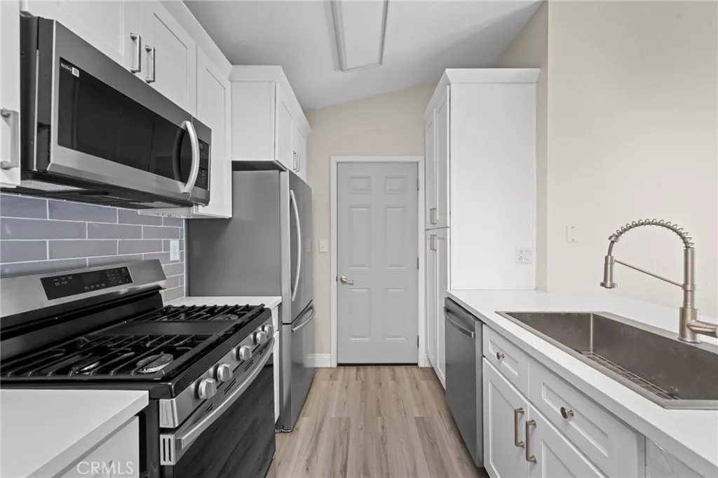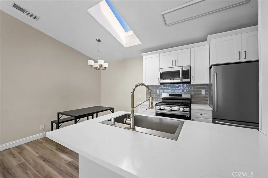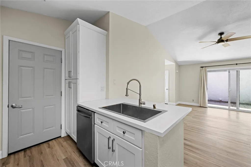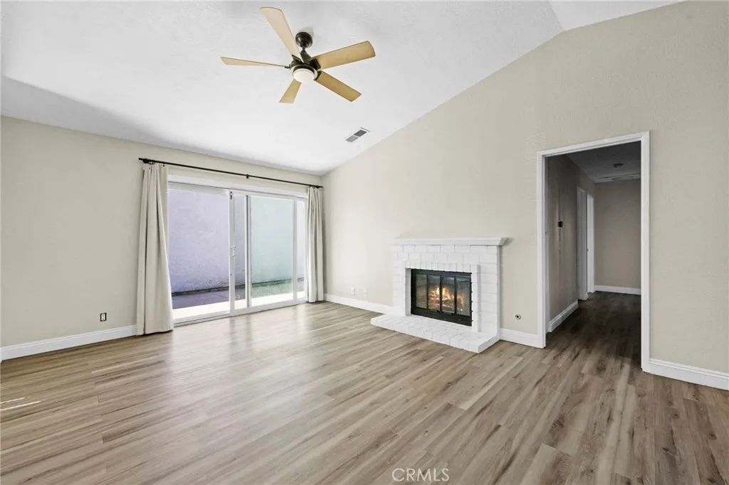 This beautifully renovated home has been thoughtfully updated from top to bottom, offering modern finishes and true move-in-ready appeal. The entire interior and exterior have been freshly painted and complemented by brand-new flooring throughout, smoothed ceilings with the popcorn texture removed, and new ceiling fans installed in all three bedrooms and the living room. The home features a new front entry door, a replaced exterior door leading to the garage, updated smoke alarms, a new fireplace gas key, and enhanced curb appeal with a new mailbox, updated address signage, new exterior lighting in both the front and backyard, and refreshed landscaping with the removal of three palm trees. Both the guest and primary bathrooms have been upgraded with new vanities, toilets, mirrors, brushed-nickel light fixtures, and matching shower and tub fixtures. The kitchen has been fully refreshed with new cabinetry, brushed-nickel hardware and lighting, a new backsplash, and new appliances including the sink, dishwasher, and microwave. The garage has been improved with added drywall, a new water heater, and a dedicated Tesla car-charging outlet (NEMA 14-50, 240V, 50A). Additional improvements include power-washing the roof and home, sprinklers, replacing closet rods, and completing exterior clean-upmaking this home a standout opportunity for todays buyer.