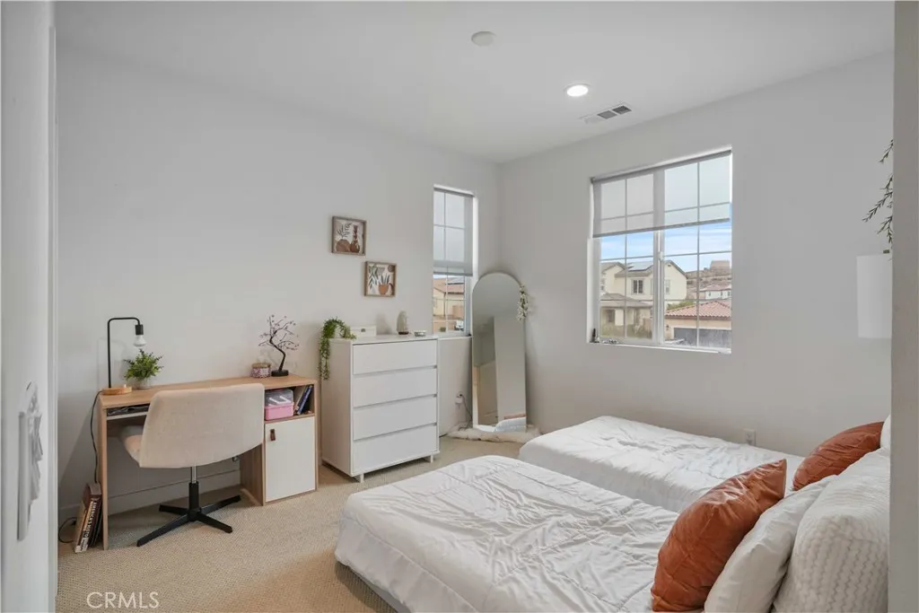 Luxury West Palmdale Home For Sale in the newest gated community of Saddlewood Joshua Ranch constructed in 2020. No need to spend extra money compared to buying new from the builder take advantage of this home fully completed exterior landscaping. Featuring one of the largest models, the Plan 3 Elevation A with 3,186 sq.ft. 18 Solar Panels OWNED (not leased and no monthly payments) plus electric vehicle EV ready outlet in the garage. Other features include Quartz countertops, Luxury Vinyl Planks, and a Whole House Fan. The Downstairs includes 1 bedroom and 1 full bathroom, in addition to a powder or half bathroom downstairs for visitors. Open concept Kitchen to Dining area to Family room, youll be able to entertain all your guests in one large area without missing a beat. Adjacent to the Kitchen is a dry bar or butlers bar, and a walk-in Pantry, and ending with the Formal Living room facing the front of the house which creates the perfect room for decorating the tree for the Holidays! Upstairs includes 2 guest bedrooms, 1 full bathroom for the guest bedrooms, and a Loft that is conveniently adjacent to the guest bedrooms which creates the perfect upstairs Living or entertainment room. The Primary Suite upstairs is spacious to include a King set, office space, a walk-in closet, a walk-in shower, a soaking tub, a private toilet room, and a dual-sink vanity. With no rear neighbor, the Primary bedroom has gorgeous views of the backyard. Conveniently located upstairs is a Laundry Room with cabinetry and rough plumbing ready for a future sink. The 3 car garage side-by-side is wid