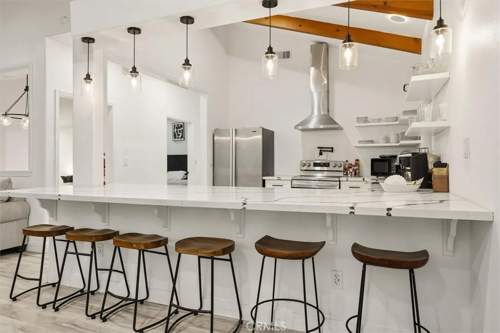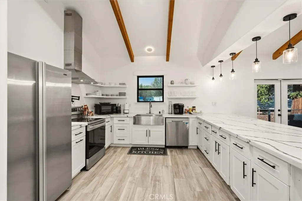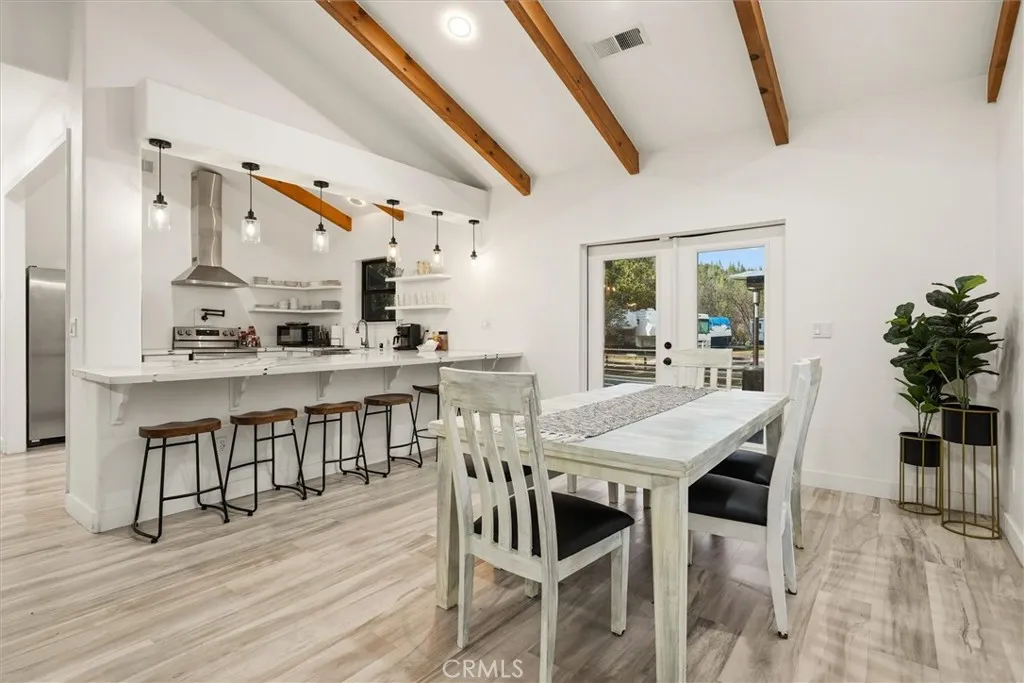 Discover this Bass Lake gem situated in the highly desirable Willow Cove area. This two-story home features a large, open living space highlighted by vaulted beamed ceilings, a cozy free-standing wood-burning fireplace, and French doors that lead to an expansive outdoor deckperfect for enjoying the serene wooded surroundings.he home is a short distance from the Pines Village for dining, groceries, and entertainment. Enjoy close proximity to Yosemite National Park and various mountain recreation trails.