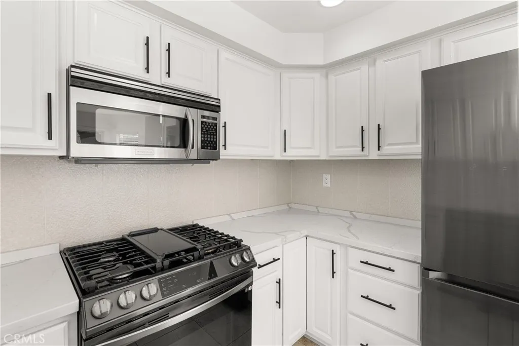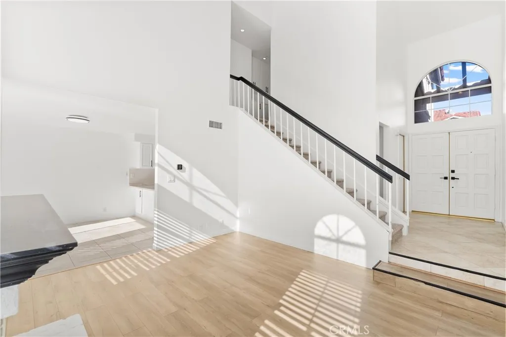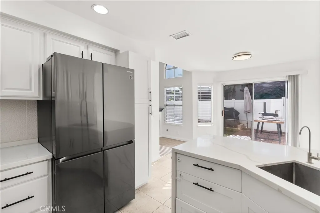 Fresh paint, newer carpet upstairs, vinyl flooring, newer appliances, and close proximity to the Rancho Santa Margarita Lake! 4 Daffodil is a beautifully updated home featuring a remodeled kitchen with quartz countertops and gas appliances, an open two-story layout, and a sunken living room with a fireplace. The bright living space includes recessed lighting and flows seamlessly into the dining area and kitchen with a breakfast bar. All three bedrooms are located upstairs, including a primary suite with a remodeled bathroom, quartz counters, and a separate vanity area. A private patio provides outdoor space, and the attached one-car garage includes laundry for added convenience. The Mission Greens community offers amenities such as a pool and spa, along with nearby parks, lake areas, and hiking trails. Sidewalks, greenbelts, and a well-maintained residential setting enhance the neighborhood. You also have access to SAMLARC amenities such as sports courts, pickleball courts, olympic size pools, parts, the beach club, and so much more! Located within the Saddleback Valley Unified School District and close to shopping, dining, and major commuter routes.