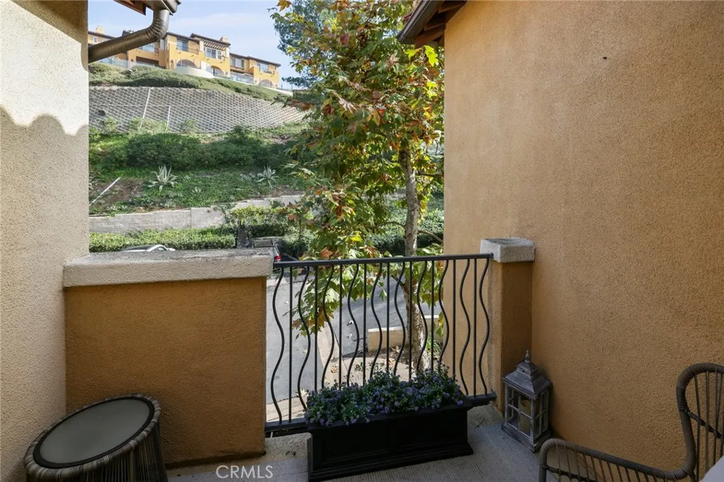 Live the Newport Coast Lifestyle -- where Elegance, Convenience, and Luxury come together. 4 Firenze is an exceptional end-unit residence located within the prestigious gated community of Trovare in Newport Coast. This elegant Mediterranean-inspired condo offers a refined blend of comfort, privacy, and resort-style living. The thoughtfully designed floor plan features two bedrooms and two bathrooms, filled with natural light and enhanced by high coffered ceilings, rich wood flooring, arched doorways, and custom shutters. The inviting living room centers around a cozy fireplace, creating a warm and sophisticated atmosphere. The kitchen is both stylish and functional, appointed with stainless steel appliances, recessed lighting, and direct access to a private balcony, perfect for al fresco dining or morning coffee. The primary suite is a serene retreat, featuring a Juliet balcony with greenbelt views, an oversized walk-in closet with built-ins, and a spa-like bathroom with dual vanities and a soaking tub. A well-sized secondary bedroom includes its own walk-in closet and easy access to a full bathroom. Additional highlights include an attached two-car garage with EV charging and one of the communitys rare private driveways, offering added convenience and parking flexibility. Residents of Trovare enjoy access to a resort-style pool and spa, along with membership at the Newport Coast Community Center, featuring a junior Olympic pool, tennis and basketball courts, cabanas, clubhouse, and towel service. Scenic walking and biking trails and a nearby private park complete the outdo