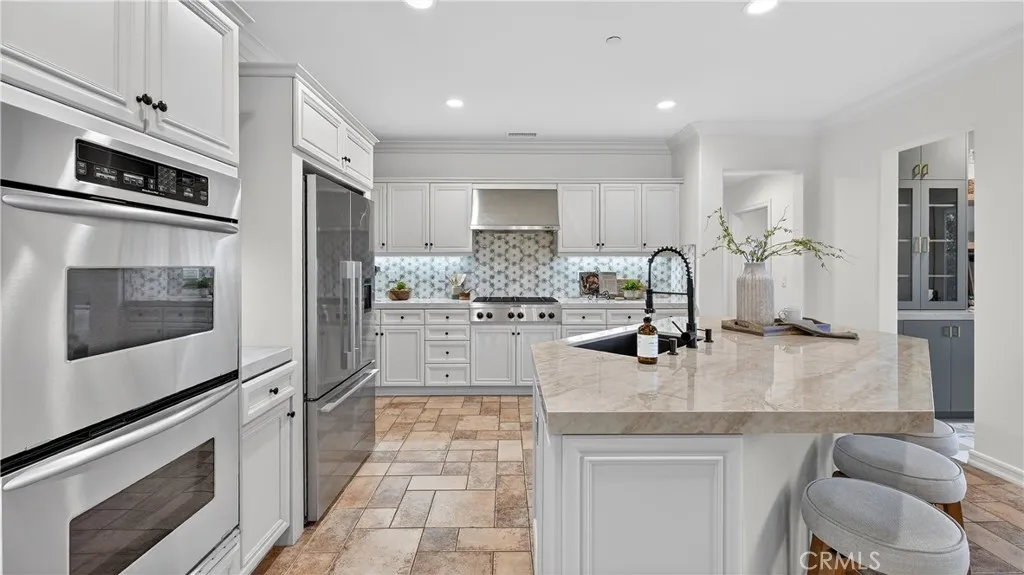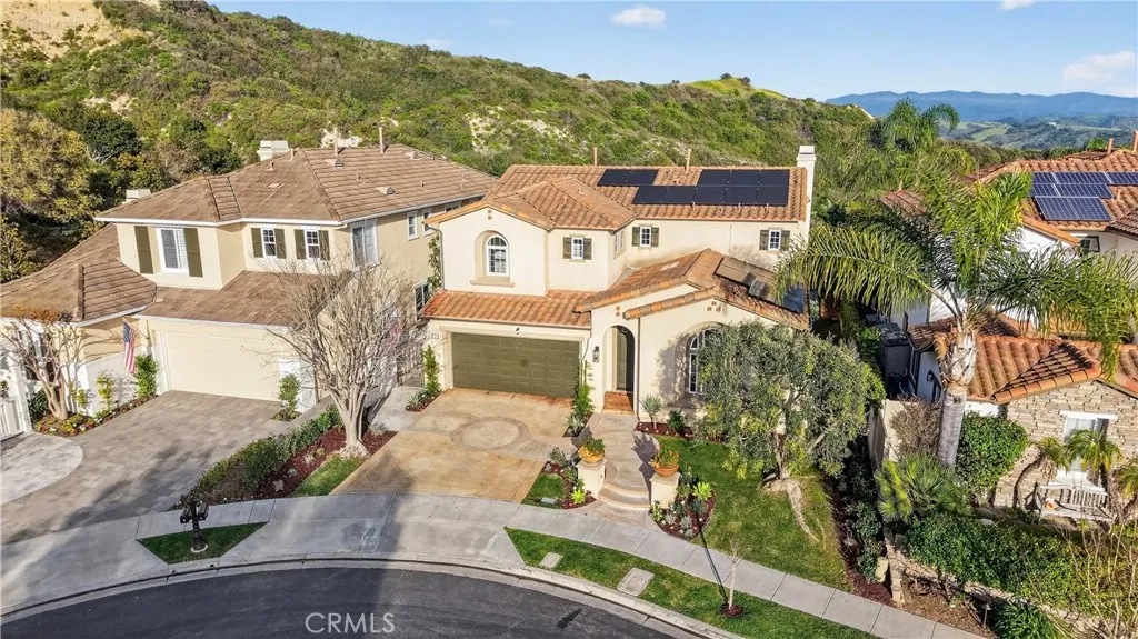 Welcome to 4 Via Belleza, an exceptional coastal retreat nestled in the rolling hills of San Clemente. Located on one of the highest streets in Talega, this beautifully appointed residence offers the perfect blend of privacy, elegance, and Southern California lifestyle. Surrounded by pristine natural open space and scenic walking trails, the property enjoys a peaceful, tucked-away setting where coastal breezes, canyon views, and the sounds of nature create a true sense of retreat. Step outside your door and explore miles of nearby trails - perfect for morning walks, trail runs, or simply soaking in the beauty of the surrounding landscape. Inside, youll discover a light-filled interior with soaring ceilings, expansive windows, and an open-concept floor plan designed for both comfortable living and effortless entertaining. The spacious living areas flow seamlessly into a gourmet kitchen featuring stainless steel appliances, a large walk-in pantry, generous counter space with new quartzite counters, a large center island, and a newly designed bar area perfect for entertaining. A bedroom ideal for guests, and a large three car tandem garage with plenty of storage complete the downstairs. Incredible hills and canyon views are showcased from the upstairs primary suite and viewing balcony. This luxurious primary suite serves as a private sanctuary, complete with a spa-inspired bath, dual vanities, soaking tub, and two spacious walk-in closets. The flex space attached to the primary suite is ideal for an office, nursery or home gym. Two additional secondary bedrooms and a beautiful