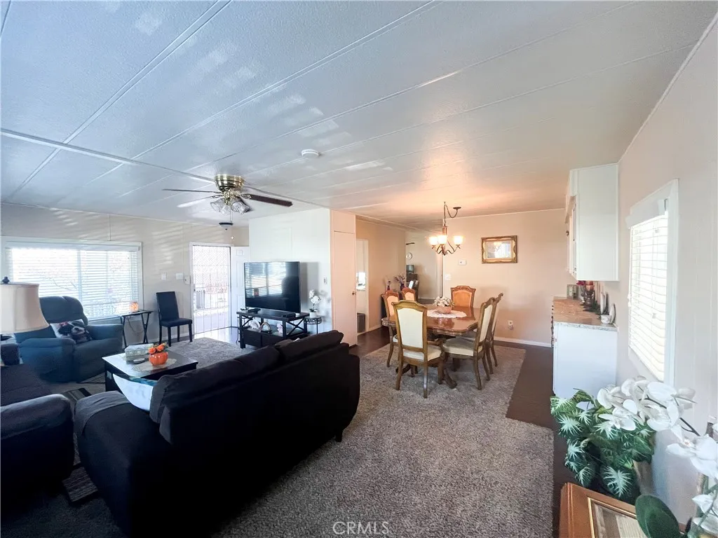 Just Reduced! Seller will consider All offers! Welcome to Riverside Meadows - Your Next Chapter Starts Here Peaceful 55+ Living in Riverside. This well-maintained and inviting home offers 2 spacious bedrooms and 2 bathrooms, perfect for comfortable living in one of the area's most sought-after senior communities. Step onto the large covered front porch, perfect for relaxing or entertaining. Inside, youre greeted by a bright and airy living room with expansive windows that fill the space with natural light. The living area flows seamlessly into the dining room, which features a built-in china cabinet with ample shelving and storage, and space for a full-size dining table that seats six. The kitchen is well-appointed with stainless steel appliances, including a refrigerator, dishwasher, built-in microwave, and oven/range. Just off the kitchen, youll find an open bonus spaceideal for a family room, home office, study, or even a second dining area. Both bedrooms are generously sized and offer adjoining bathrooms, providing convenience and privacy. Additional highlights include: Dedicated laundry room with full-size washer and dryer, Double-pane windows with 2 blinds for energy efficiency and privacy. a mix of carpet and flooring throughout, ceiling fans for added comfort, water heater, A/C, and furnace. Dont miss the opportunity to live in a beautifully kept home in the heart of Riverside Meadowswhere comfort, community, and convenience come together. Riverside Meadows is close to the 91 freeway, across the street there is a doggy park, down Magnolia is Tyler Mall, Kaiser Perm