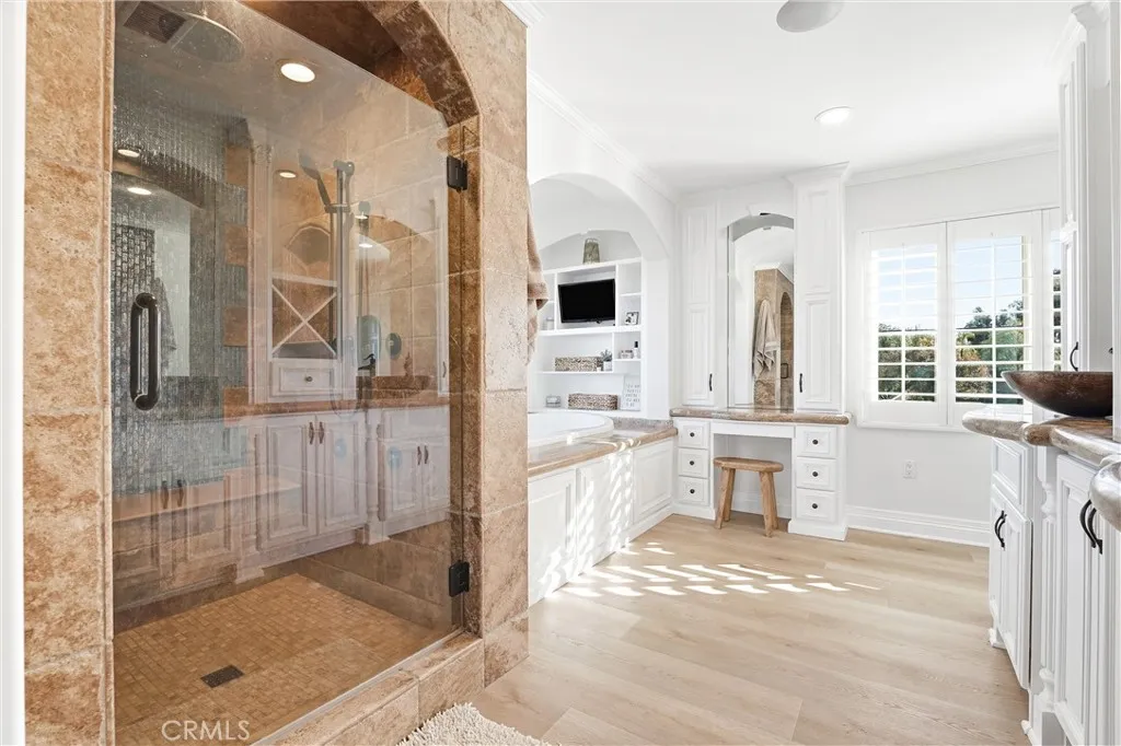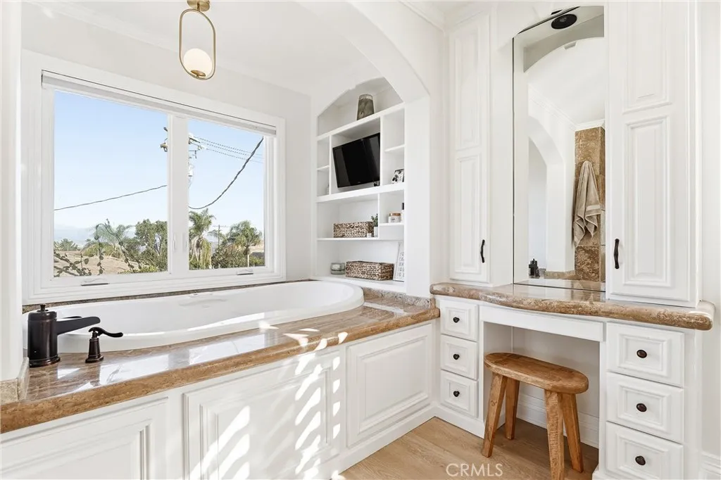 IMMACULATE TUSCANY STYLE SOUTH CORONA POOL HOME! WELCOME TO YOUR OWN PRIVATE PARADISE ON AN EXPANSIVE .40-ACRE LOT, TUCKED INSIDE ONE OF CORONAS MOST SOUGHT-AFTER NEIGHBORHOODS AND THE CALIFORNIA DISTINGUISHED SCHOOL DISTRICT. THIS 4-BEDROOM, 3-BATH RESIDENCE HAS BEEN THOUGHTFULLY REMODELED WITH A DESIGNERS TOUCH TO EMBRACE TODAYS SOUTHERN CALIFORNIA INDOOR-OUTDOOR LIFESTYLE. TWO SEPARATE COVERED PATIO AREAS CREATE EFFORTLESS SPACES FOR ENTERTAINING AND EVERYDAY ENJOYMENT. ENTER THROUGH CUSTOM WROUGHT-IRON DOUBLE DOORS INTO AN OPEN, AIRY FLOOR PLAN ACCENTED BY TUSCAN TRAVERTINE FLOORING THROUGHOUT MOST OF THE HOME. THE CHEFS KITCHEN IS A STANDOUT, FEATURING A VIKING RANGE, LEVEL-4 STONE COUNTERTOPS, NEW KITCHEN AID BUILT-IN OVEN, STAINLESS STEEL POT FILLER, CONCEALED MICROWAVE, SEPARATE PANTRY, FRESHLY PAINTED CABINETRY, NEW LED LIGHTING, TILE BACKSPLASH, TILED HOOD VENT, AND UPDATED SINK FIXTURES. JUST OFF THE KITCHEN, A CUSTOM BUILT-IN BAR WITH STONE COUNTERS, SEPARATE SINK, NEW BEVERAGE REFRIGERATOR, AND BUILT-IN CABINETRY OPENS SEAMLESSLY TO THE DINING ROOM, COMPLETE WITH NEWLY PAINTED BUILT-INS, STONE COUNTERS, TILE BACKSPLASH, AND UPDATED LED LIGHTING...IDEAL FOR HOSTING AND ENTERTAINING. STEP OUTSIDE TO A TRUE ENTERTAINERS BACKYARD SHOWCASING A POOL, SPA, FIREPIT, AND A SHOW-STOPPING CABANA WITH AN OVERSIZED OUTDOOR KITCHEN. THE CABANA FEATURES A TILED ROOF, ROPE LIGHTING, OUTDOOR SPEAKERS, STORAGE CABINETRY, EXTRA-LARGE GRILL WITH SEPARATE BURNERS, LARGE SINK, WRAP-AROUND CONCRETE COUNTERS, BAR SEATING, TILED FLOORING, AND AN OVERSIZED LED TV. PERFECT FOR GATHERINGS