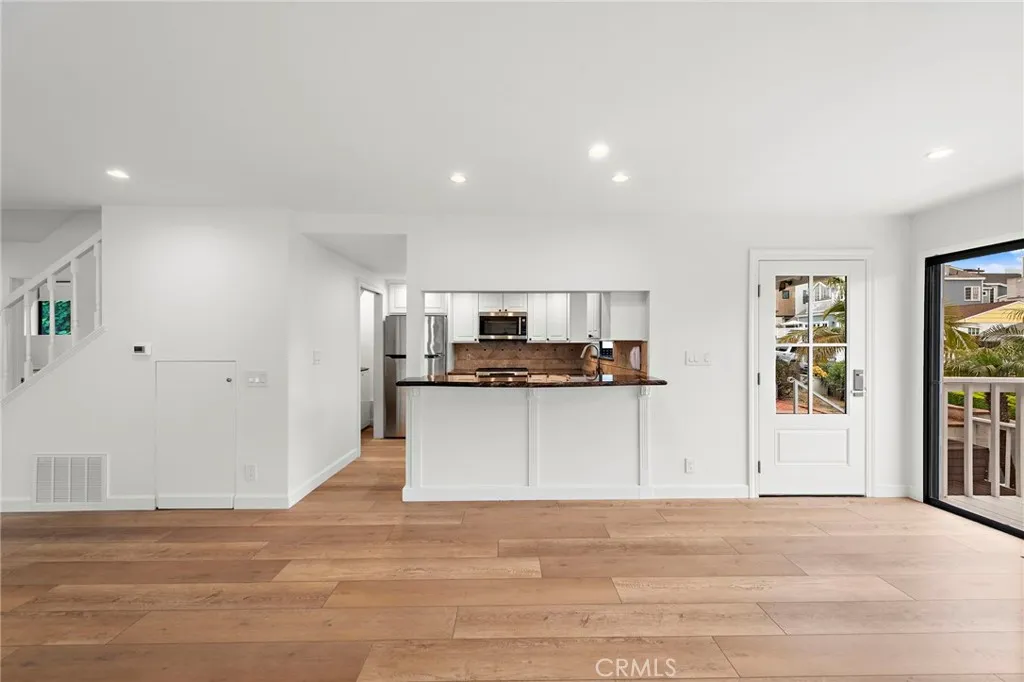 This recently refreshed front unit offers a serene coastal retreat with its prime location by the Goldenrod Footbridge and always-desirable South of PCH ease of access. Adorned by the bright and airy living space, freshly updated flooring and paint create a contemporary backdrop. The open floor plan seamlessly connects the living, dining, and kitchen areas that include updated appliances, stone countertops, and ample cabinetry - providing both style and functionality for the home chef and entertainer. A breakfast bar offers casual dining options, while the adjacent dining area is ideal for more formal gatherings. Two spacious bedrooms provide comfortable accommodations, each with their own updated bathroom for added convenience and privacy. The primary suite is a tranquil haven, featuring a luxurious ensuite bath and ample closet space. Outside, the front patio offers a peaceful oasis for enjoying morning coffee or alfresco dining in the ocean breeze. With its prime location, you'll enjoy easy access to the vibrant shops, restaurants, and beaches of Corona Del Mar Village. Please note that the home next door is under construction.