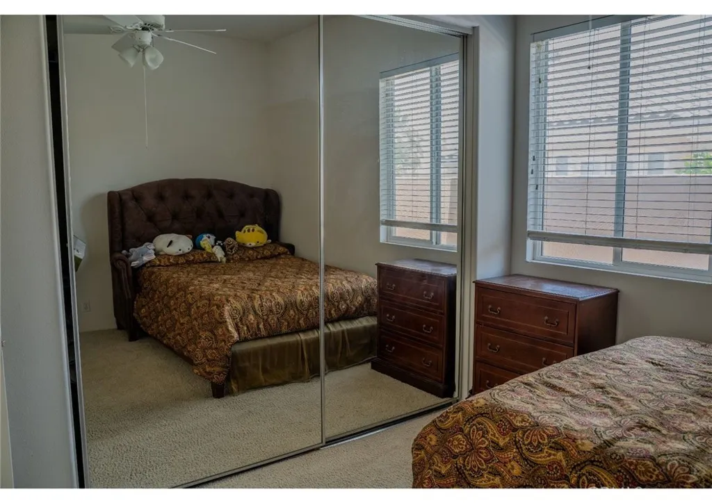 Price reduction to encourage a quick sale. Welcome to Vista Mirage, a very peaceful gated private community of 64 Mediterranean style homes built in 2002, With over 2000 sq. ft. of living space, open floor plan, a refreshing pool and spa with mountain views. This Desirable Plan 2 Model in Vista Mirage, a gated enclave of 64 homes built in 2003 with 2,071 Sq. Ft. has 3 bedroom and 2 full baths, a great room with a fireplace, formal dining room and living room and a separate laundry room. The Master Suite is 15 x 17 and has a walk-in closet as well as a spacious bathroom with double sink vanity and a separate shower and a bathtub. The home sets on an elevated lot with fabulous mountain views. The lot is Fully landscaped with attractive plants and fruit trees on automatic sprinklers. This wonderful home has stunning mountain views from the south-facing backyard, with no neighbors behind you. The home is located on a quiet interior street and great interior location of the subdivision . This beauty is light, bright, open and spacious with three-bedrooms, two-baths. There is nice separation from the master bedroom and two other guest bedrooms.