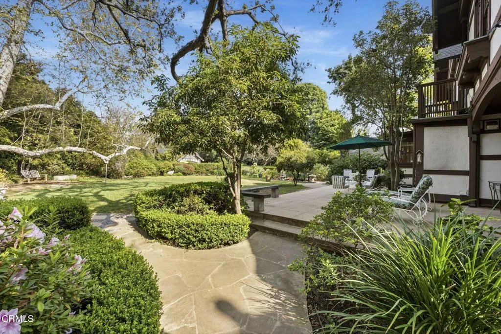 412 Oaklawn Avenue is a landmark 1905 Tudor Revival residence set on nearly one acre in South Pasadena's Oaklawn Historic District. Designed by Kavanaugh & Barnes and built by the F. O. Engstrum Company, The architecture reflects the early American Tudor Revival style, defined by steeply pitched front facing gables, ornamental half timbering, stucco and masonry cladding and distinctive brick detailing. A deep, recessed brick entry porch framed by a Tudor arch creates a dramatic sense of arrival. The home's scale and detailing reflected the aspirations of the Oaklawn tract, a master planned enclave promoted as South Pasadena's 'suburb deluxe.' Created during a period of rapid cultural and architectural growth in the area.Inside, bands of small paned nine over one wood sash windows wrap the facade, while a prominent bow window anchors the western end of the house. Original architectural details include hardwood floors, finely crafted millwork, built in cabinetry, leaded glass accents and generously scaled public rooms that reflect the home's early Old English design. The grounds include a historic carriage house beside the pool, updated with a kitchen and bath, as well as a separate studio with a fireplace opening to the outdoor dining terrace. These auxiliary structures preserve the property's estate like character while offering flexible living and guest accommodations. The home has been carefully stewarded through seismic retrofitting, sensitive remodeling, and restoration, maintaining its architectural integrity throughout.A contributing property within the National Regis