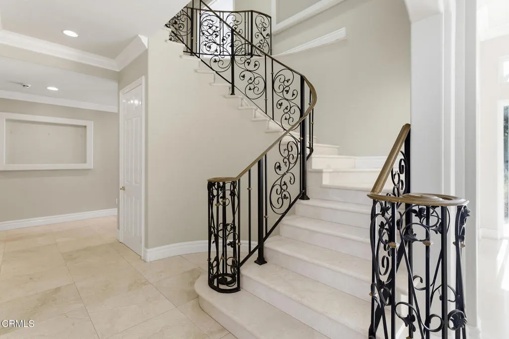 Welcome to an extraordinary private sanctuary tucked behind TWO GATED ENTRIES on an exclusive cul-de-sac with only four homes in the prestigious Lake Encino enclave of Encino. This expansive 5-bedroom, 5-bathroom Mediterranean estate spans 4,721 square feet on a stunning nearly one-acre lot, offering panoramic mountain views, unmatched privacy, and the rare combination of scale, location, and potential that discerning buyers dream of.Situated on the coveted Encino side adjacent to the sought-after Silverhawk community, this welcoming home greets you with a grand entry and soaring cathedral ceilings that set the tone for the impressive open-concept floor plan throughout. The spacious chef's kitchen features a center island and flows seamlessly into generous living and family rooms, each designed for elegant entertaining. Cream marble flooring spans much of the first level, enhancing the light-filled, inviting atmosphere. Multiple fireplaces anchor the living room, family room, and primary ensuite bathroom, adding warmth and character to every gathering space.Upstairs, the primary suite is a true retreat, capturing sweeping mountain and city views from private balconies. Throughout the home, tall ceilings and expansive windows frame breathtaking hillside panoramas from nearly every room, creating the quintessential indoor-outdoor Southern California living experience.Step outside to your own private oasis featuring an oversized black-bottom pool and spa, built-in BBQ, and expansive entertaining space, all positioned to maximize the stunning mountain views. The nearly one-acre
