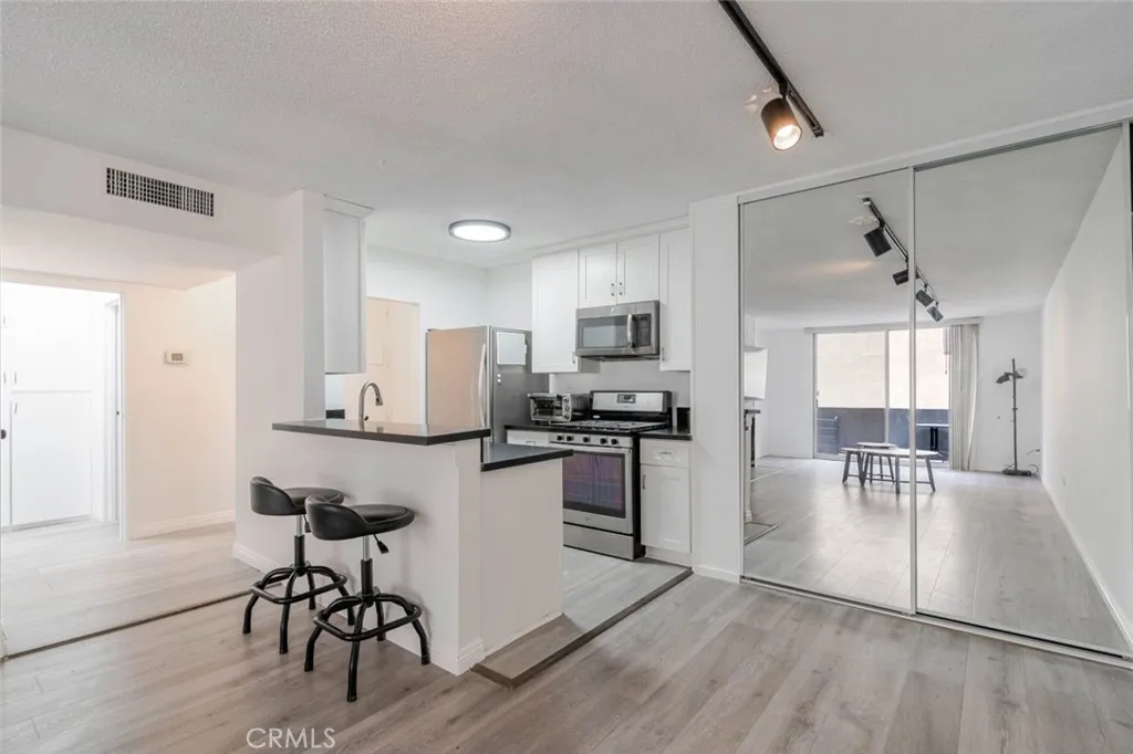 Now available for lease in the sought-after La Fayette Park Towers, this stylish 1-bedroom, 1-bathroom condo offers 715 square feet of bright, modern living in the heart of Los Angeles. Designed for comfort and convenience, the unit features sleek grey laminate flooring, contemporary baseboards, and an open-concept layout ideal for entertaining or everyday living. Enjoy the ambiance of a cozy fireplace in the living room or take in city views from your private balcony. The kitchen is outfitted with granite countertops, stainless steel appliances, and generous cabinetry, while the adjacent dining area includes a mirrored sliding door closet for added storage. The spacious bedroom offers ample closet space, and central heating and air conditioning provide year-round comfort. Residents of La Fayette Park Towers enjoy a host of amenities, including a rooftop pool and spa with panoramic views, a laundry facility, secured entry, and a welcoming lobby. Located just moments from McArthur Park, Koreatown, and DTLA hotspots like Target, Vons, and Quarters Korean BBQ, this prime location offers unmatched urban accessibility. A fantastic lease opportunity that blends modern finishes, excellent amenities, and a central location welcome home.