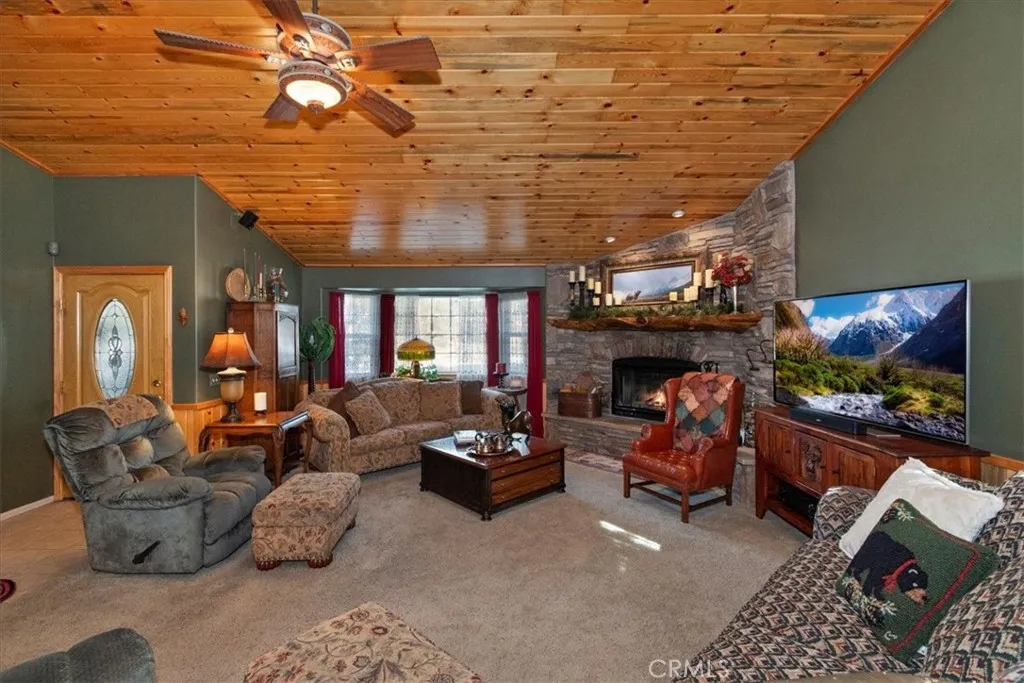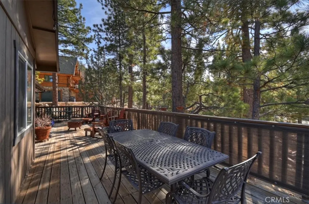 Public Remarks: Experience the warmth and mountain charm of this beautifully maintained Castle Glen home, ideally located near everything Big Bear has to offer. Designed for convenience and accessibility, this property features a rare flat, level entry and a desirable single-level floor plan. As you enter, you are welcomed into a spacious open great room highlighted by knotty pine tongue-and-groove ceilings, classic wainscoting, and rich wood accents throughoutcreating a warm, inviting atmosphere. The open-concept design seamlessly connects the living area, kitchen, and dining space, making it ideal for both everyday living and entertaining. The well-appointed kitchen offers abundant knotty pine cabinetry and a large center island, perfect for casual meals and gatherings. Cozy winter evenings can be enjoyed around the gorgeous wood-burning fireplace, a true focal point of the living space. The spacious primary bedroom provides direct access to the rear deck and features a walk-in closet and a private ensuite bath. The expansive back deck spans the entire full width of the homean ideal setting for entertaining, relaxing, and enjoying the fresh mountain air. Extra amenities include solar panels, low-maintenance landscaping, and a two-car attached garage with ample space for vehicles and mountain toys. Whether you are seeking a full-time residence, second home, or investment opportunity in a short-term rentalfriendly neighborhood, this lovingly maintained property is located in one of Big Bears most desirable communities. Put this one on your list! ____________________________