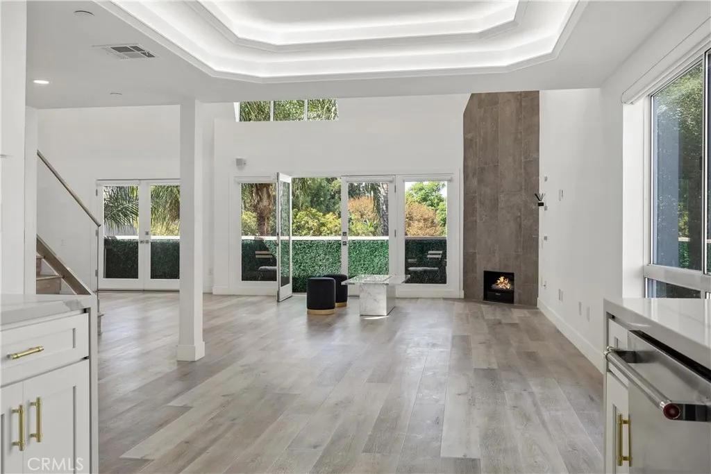 Welcome to your new home right off of Ventura Blvd in beautiful Studio City. As you enter the unit you are immediately taken aback by the open concept living area with high ceilings, hardwood floors throughout, fireplace in the living room, and a conveniently located bar area. This home is a great space to entertain or have your own sanctuary after a long day. The kitchen boasts stone countertops, stainless steel appliances, and under cabinet lighting. Right off the kitchen is the spacious living room abounding with bright, natural light with palm treetops right outside the balcony and second level upscale window near the ceiling. The second bedroom has been converted to a loft making this a great space for guests, or a home office. The luxurious primary bedroom sports a fireplace, walk in closet complete with designer closet system, and a gorgeous on suite primary bathroom. All of this complete with a private outdoor patio giving you the convenience of building living with the bonus of a spacious outdoor space. Did I mention the in unit laundry, and 2 parking spaces? This one is a must see.