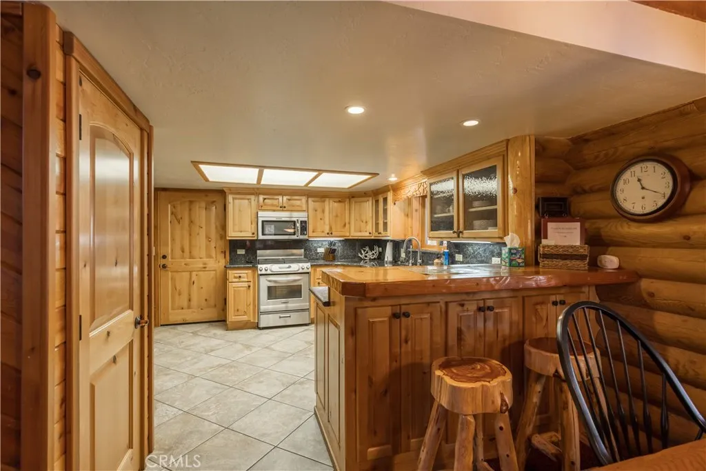If you ever dreamed of living in a real genuine log home in a Mountain Resort , near Ski Slopes in a terrific Mountain Community with year around attractions including a lake, this could be your rental for the next 12 months. Lower Moonridge location, attached garage, RV Parking, landscaped front and rear yards with a lighted horse shoe pits, outdoor speakers, extra large rear deck, covered front porch. Interior amenities include granite kitchen counters, stainless appliances, walk-in pantry, formal dining area, washer /dryer, plus 2 of the upstairs bedrooms have extra sleeping lofts. In addition to being a super short jaunt to the Bear Mountain Ski Shuttle, this property is convenient to the golf course, the 'new Zoo' and very close to lake access. level parking and only 2 steps up the front porch. Beautiful updated furnishings. This will be an amazing home to live in, don't miss out.