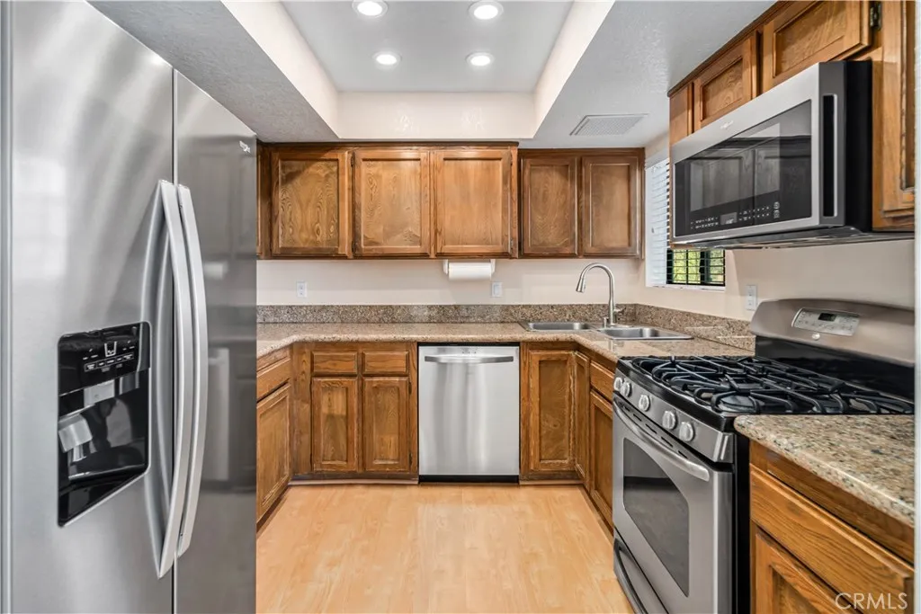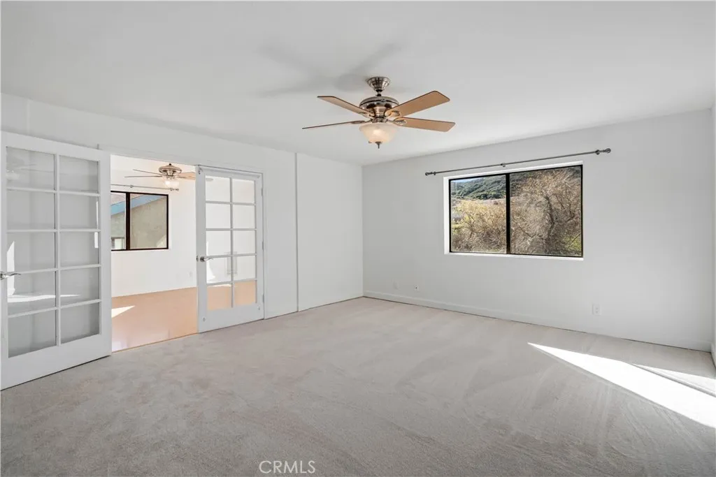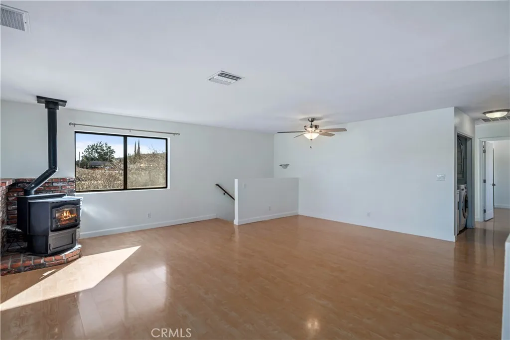 Set in the serene Elizabeth Lake community, this thoughtfully updated two-story home offers 3 bedrooms, 3 bathrooms, 1760 sf of flexible living space, ideal for a variety of living needs. Numerous improvements, including freshly painted interior and exterior, new carpeting, re-sealed windows, tankless high-efficiency water heater, make this home truly move-in ready. The upper level is filled with natural light and features a spacious living room with French doors that open to a balcony showcasing sweeping mountain views. A pellet stove with brick surround, built-in thermostat, and auto ignition provides cozy winter comfort, along w/central air, and evaporative cooling for efficient climate control. Added features include ceiling fans, wood-framed windows, laminate, carpet, and vinyl flooring. The functional kitchen offers granite countertops, stainless steel appliances, (refrigerator, dishwasher, microwave & propane range) and LED lighting. This level also includes one of two primary bedrooms with en-suite bath, a second bedroom and full bathroom, and a convenient laundry nook with washer and dryer included. The lower level functions as a private retreat, featuring the second primary bedroom with full bath, its own family room, multiple storage areas, and sliding doors leading directly to the backyard. This flexible space is ideal for guests, extended family, rental potential, or multigenerational living. Outside, the property features a 2-car attached garage and abundant paved driveway parking, gated RV access & parking, and even wired for an EV charging station (just need