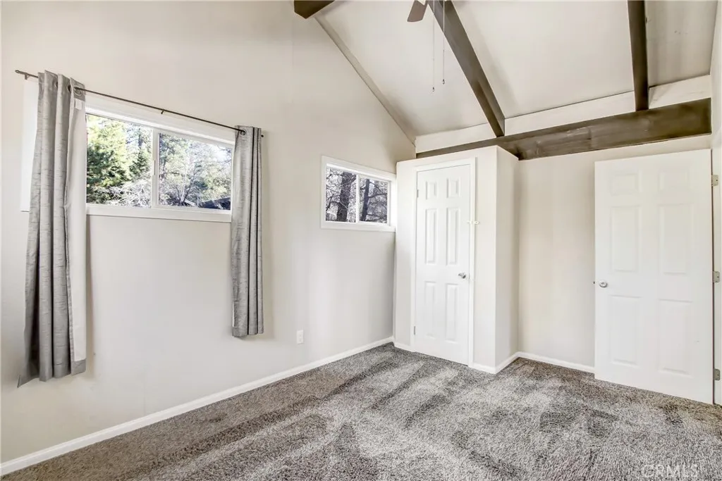 Cozy Big Bear home on a Large Lot! Welcome to this charming 2 bed, 1 bath mountain retreat offering 789 sq ft of living space on a spacious 12,051 sq ft lot. Featuring vaulted ceilings, exposed beams, a cozy fireplace, and an updated kitchen with stainless appliances, this home is perfect as a full-time residence, weekend getaway, or short-term rental. Enjoy the peaceful setting from the covered deck surrounded by pine trees, with plenty of room for outdoor entertaining, parking, and future expansion. Conveniently located near Big Bear Lake, ski resorts, hiking trails, and the Village. A great opportunity to own in Big Bear!