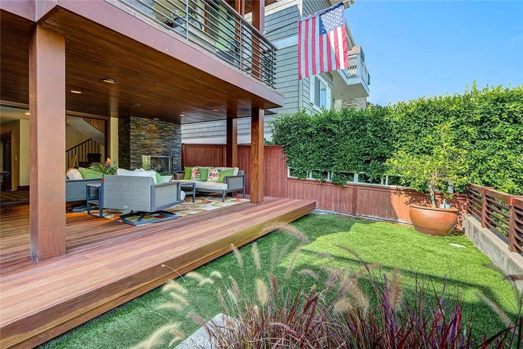 Coastal Living Redefined in the Sand Section! This KAA-designed home is a study in modern coastal elegance, defined by sleek architectural lines and understated, contemporary interiors. Perfectly positioned in the prestigious Sand Section, the home is as much a work of art as it is a sanctuary of effortless sophistication. A large front deck with a fireplace and grassy area set the stage for casual gatherings or quiet moments- a unique feature in this coveted neighborhood. A curated palette of rich natural woods warms the elegant interior, while La Cantina doors on every level dissolve the boundaries between indoor refinement and outdoor serenity, inviting ocean breezes and natural light inside. The entry level opens onto a foyer which leads to a den with a private patio, an ensuite bedroom (perfect for guests), and a separate laundry room. The second level houses a formal living room with stone fireplace and balcony, kitchen (featuring a soaring ceiling open to the third floor), Media room with a beautiful built- in bar and desk area) and a full bath. Upstairs, you'll find the primary suite with a Ocean View balcony, an office (overlooking the second level) and two additional bedrooms and full bath Take a look at the floor plan in photos! More than a residence, this home is a modern expression of Manhattan Beachs lifestyle- where thoughtful design and a profound connection to the coast and nature come together in perfect harmony.