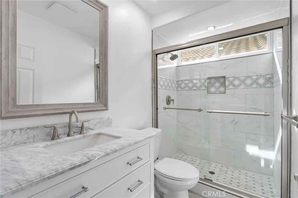 This lovely 4 bedroom, 5 bath home is located in the guard gated community of Bellagio in Calabasas with over 3600 sq ft. Totally updated with newer windows, newer manufactured wood flooring throughout and every bathroom has been beautifully redone. Walking in the front door gives u a sense of amazing space.. Step down to a spacious living room with cathedral ceilings, fireplace and wet bar. Formal dining room off the living room with recessed lighting. The kitchen has new quartz counter tops, center island and new cabinets.There is an eating area, sub zero refrigerator and a 5 burner gas stove top. The family room off the kitchen has a fireplace and opens to the wet bar. Sliding glass doors out to the backyard. Guest bathroom and laundry room down stairs as well as one bedroom with its own bath. Primary suite and 2 secondary bedrooms upstairs. Huge primary has vaulted ceilings, fireplace, recessed lighting and beautiful views of the trees and back yard below.There are 2 closets, one being a walk in. Brand new lovely primary bath has a separate tub and large shower, two new cabinets with double sinks and great lighting. The two secondary bedrooms have their own totally redone bathrooms, recessed lighting and mirrored closet doors. There is a very large bonus room upstairs with vaulted ceilings, could be a 5th bedroom, play room or gym, so many options!! Artificial turf in front and back. The backyard has a pool, spa and new patio decking. There is also an electric patio cover. Three car attached garage with textured flooring and storage cabinets. Great location in the corne