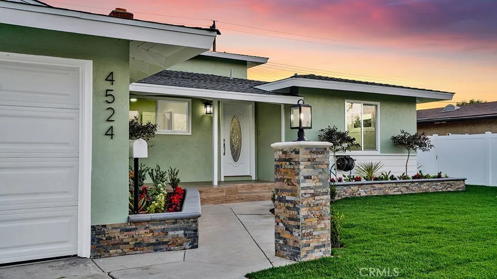 Welcome to 4524 W. Sirius, Orange a beautifully renovated, move-in ready home offering modern luxury, thoughtful upgrades, and an unbeatable central location. This spacious 5-bedroom, 2-bath residence has been extensively updated from top to bottom. Step inside to brand-new luxury flooring throughout the main level and brand-new carpet upstairs. Fresh interior and exterior paint, new recessed lighting, new fixtures, new outlets, and brand-new interior doors create a bright, contemporary feel throughout the home. The completely remodeled kitchen features quartz countertops, soft-close cabinetry and drawers, brand-new stainless steel GE Profile appliances (refrigerator, microwave, dishwasher, and range/oven), and a new garbage disposal. The remodeled gas fireplace adds warmth and character to the main living space. Both bathrooms have been tastefully updated with brand-new tubs, toilets, dual sinks in one bathroom, modern fixtures, and faucets. Major system upgrades include: Brand-new dual-pane windows throughout Brand-new central AC and heating system Separate new mini-split AC/heat system in the back bedroom Brand-new roof The large den features new windows, updated lighting, and direct garage access ideal for a bonus room, office, or additional living area. Exterior improvements are equally impressive: Brand-new sod in front and back yards New sprinkler system (front and back) All-new landscaping and hardscape accents New cement work and landscape drains Brand-new vinyl fencing on both sides with new vinyl gate The garage has been refreshed with new drywall, a brand-new
