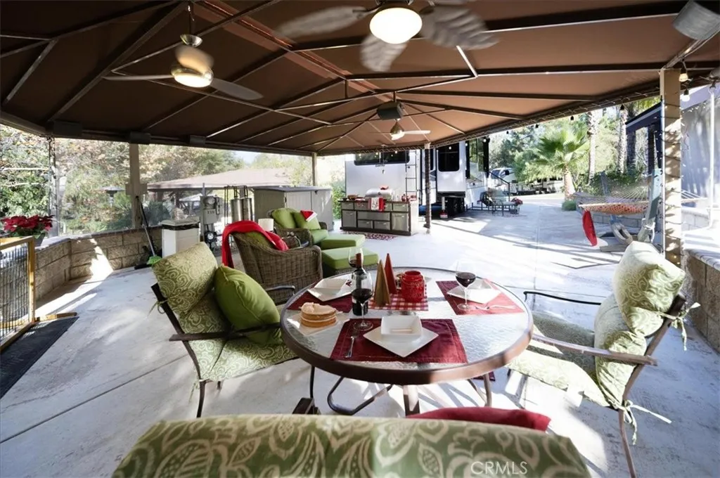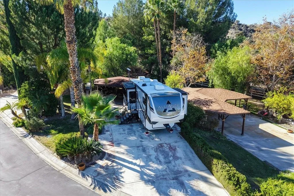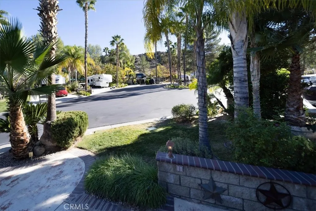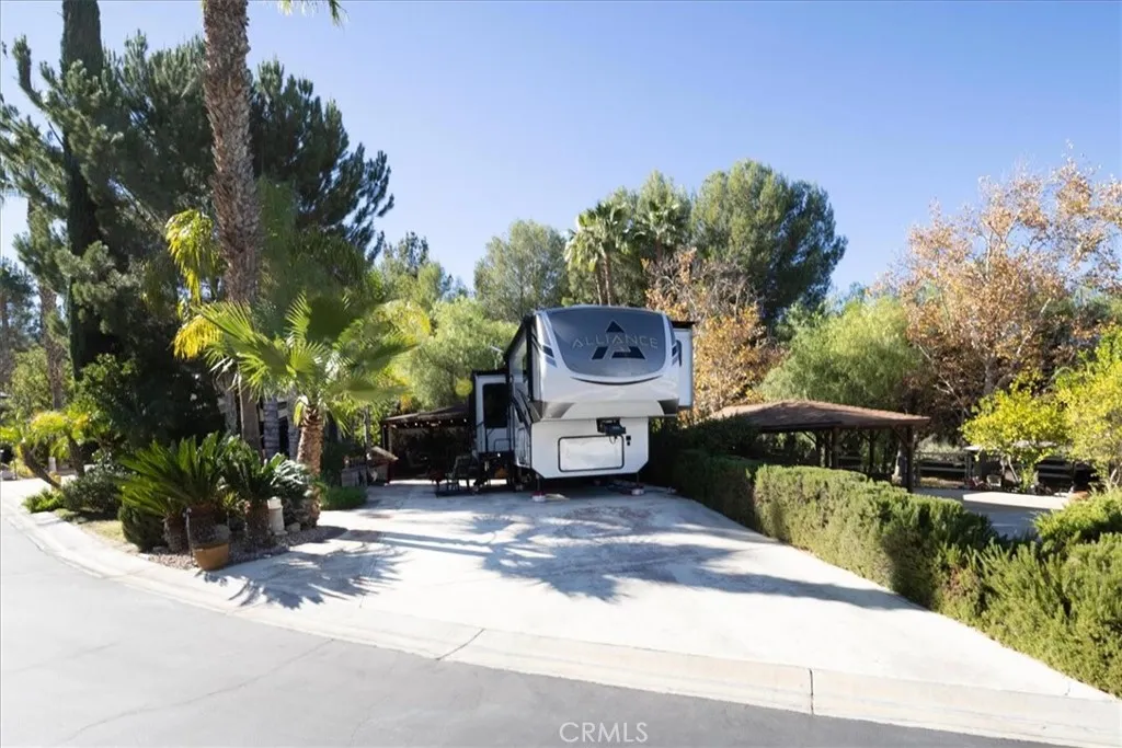 Nestled at the end of a quiet cul-de-sac, this exceptional oversized lot offers privacy, breathtaking mountain views, and a truly resort-style setting. A spacious covered outdoor living area features a large canvas canopy over the dining and lounge spaces, complete with comfortable seating, a TV viewing area, dining table, ambient lighting, and ceiling fansperfect for relaxing or entertaining year-round. The current owners have already invested in professional design plans and cost estimates to complete the kitchen, giving you a head start on creating your ideal forever home. The rear of the property borders association-maintained common area, creating the feel of your own private park without the upkeep. Mature landscaping and expansive lawn areas extend along the side and back of the lot, enhancing both beauty and privacy. Located within the gated Rancho California RV Resort, owners enjoy access to outstanding amenities including a golf course, two tennis courts, fourteen pickleball courts, horseshoe pits, bocce ball courts, basketball, a fishing lake, dog park, clubhouse facilities with laundry, bathrooms and showers, plus an on-site restaurant and market. With 592 well-maintained sites, this resort community offers an unmatched lifestyle.