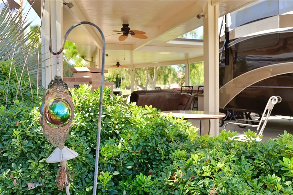 Welcome to "THE LOOP"! A sought after location within the resort. With a custom alumawood structure, sweeping golf course views, mature landscape, water features and surrounding countryside makes this lot a must see on your property tour. Just twenty minutes outside of Temecula, Ca. in the hills of wine country at an elevation of eighteen hundred feet makes for comfortable living any time of year. With Palm Desert and high end shopping on El Paseo forty five minutes away and the coast just over an hour, this resort RV lot is in the ultimate Southern California location. The lot itself is situated on a slight corner facing north/west for early morning sun and beautiful evening sunsets. An established shade tree and stone walking path just beyond the golf cart area, frames the entrance and welcomes you into a bistro seating area, TV niche and gas fireplace. Chef style galley kitchen with overhead TV captures endless views of the fairway, water features and palm trees. Stainless steel grill, drawers, corner sink and dual mini fridge(s) and adjacent bar provides plenty of room to host guests. A formal dining area allows for comfortable seating. An additional raised seating area towards the rear of the lot offers a place to relax and take in incredible views. Resort boasts a 14 hole executive golf course, 5 pools, spas, tennis courts, pickleball courts (several just added), dog park, general market, coming soon restaurant, laundry facilities/showers, fishing lake and variety of resort activities throughout the year. No age restriction.