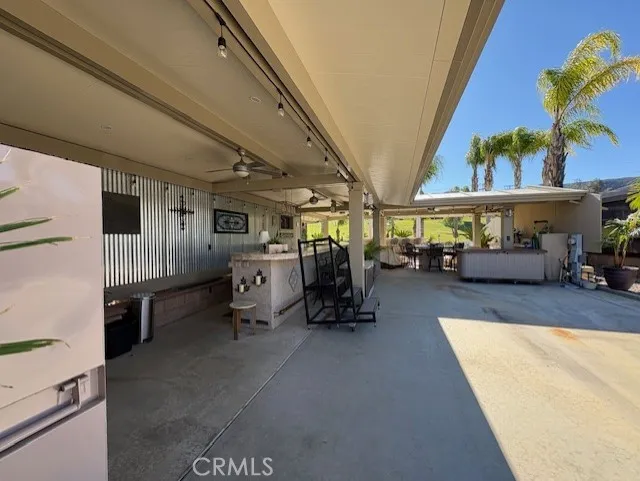 Nestled on a massive lot with no direct neighbors behind, this property offers both privacy and charm. The expansive Alumawood build-out features three islands, two elegant water features, and fantastic curb appeal. Inside, you'll find a fully equipped setup with a dishwasher, oven, stovetop, two refrigerators, and a washer and dryer. There's also a stone dining table, ceiling fans, and screens to keep things comfortable. Outside, a huge meadow and lots of palm trees create a beautiful atmosphere, complemented by planter for outdoor green thumb enjoyment. In addition, Rancho California RV Resort enriches your lifestyle with a host of top-tier amenities. Owners enjoy a 14-hole executive par-3 golf course at no extra cost, along with access to five pools and jacuzzis, tennis and pickleball courts, a dog park, two clubhouses, a fitness center, a fishing pond, horseshoes, and a bocce ball area. The resort is guard-gated with no age restriction, ensuring a welcoming environment for all. Monthly HOA fees cover unlimited use of the golf course, all amenities, trash pickup, and water, sewer, and common area maintenance. With financing available, the RV Resort offers the perfect blend of a private property lifestyle and a vibrant community atmosphere.