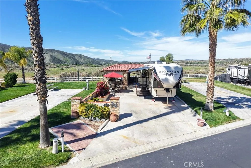 RV lot with mountain and desert views and no rear neighbors located in the guard-gated Rancho California RV Resort near Temecula Wine Country. Property improvements include a gorgeous build-out with full electric screens, Gorgeous unobstructed Sunsets, interior drapes, built-in TV cabinet, and additional screen awnings overlooking the open desert area. Outdoor features include extra seating area, large concrete RV pad suitable for larger coaches, golf cart parking with privacy wall, & raised garden planter box. All furniture inside build-out to be included in purchase price. Rancho California RV Resort amenities include 14-hole Executive Par 3 golf course (owner use included), 5 pools and spa areas, tennis courts, pickleball courts, dog park, clubhouses, hiking trails, horseshoe lawn, and onsite market. Monthly HOA includes water, sewer, trash service at lot, common area maintenance, and use of resort amenities including the golf course. Guard-gated community with no age restrictions. Financing available....