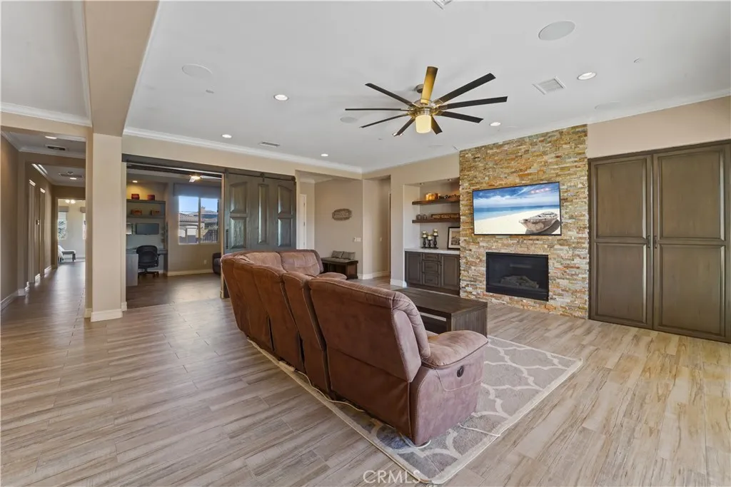 Welcome to your private desert retreat in the heart of La Quinta, where luxury, comfort, and lifestyle come together seamlessly. This beautifully upgraded and fully furnished 4 bedroom, 4 bathroom home offers the perfect blend of modern design and resort style living. From the moment you arrive, you are greeted by clean desert landscaping and inviting curb appeal that sets the tone for what is inside. Step through the entry into a spacious open concept floor plan featuring expansive tile flooring, custom finishes, and a seamless flow between the living, dining, and kitchen areas. The living room is anchored by a stunning stone fireplace and enhanced by a fully integrated smart home system, offering convenience and control at your fingertips. The chefs kitchen is designed to impress, showcasing a large center island with bar seating, sleek cabinetry, stainless steel appliances, double ovens, and designer lighting that creates a warm yet modern feel. Whether you are hosting guests or enjoying a quiet night in, this space delivers both function and style. The primary suite is a true retreat, offering generous space, direct access to the backyard, and a spa inspired bathroom complete with dual vanities, soaking tub, and a glass enclosed walk in shower. Each additional bedroom is well appointed, providing comfort and flexibility for guests, family, or a home office. Step outside to your own private resort where the backyard features a sparkling pool and spa, covered patio, and built in BBQ area perfect for entertaining or relaxing under the desert sky. Whether you are enjoying a
