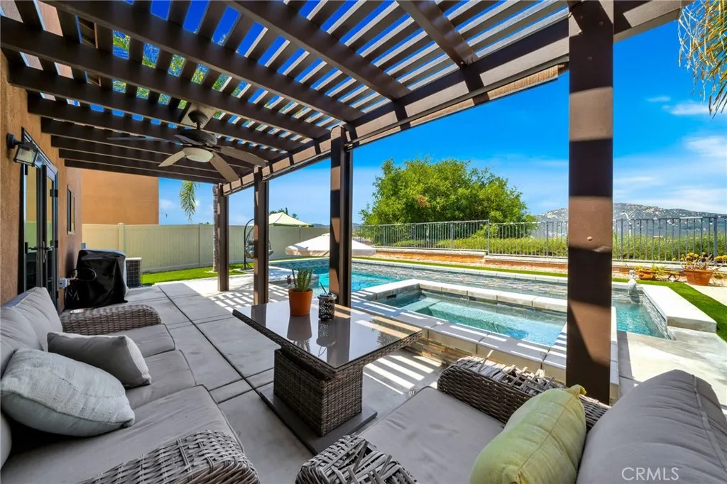 Welcome to this tranquil Temecula Retreat! Draped in style, charm, and comfort, this beautifully upgraded pool home is nestled in the Redhawk Community, one of Temecula's most desirable communities. Featuring gorgeous vinyl flooring, neutral paint, and elegant white riser stairs, this home exudes warmth and modern sophistication throughout. Upstairs, youll find a huge bonus room perfect for a playroom, gym, media room, or home office, along with four spacious bedrooms, offering ample space for family and guests, including the Primary Retreat with it's ensuite bath, spacious walk in closet and gorgeous views of hills, neighborhood and Pechanga Resort. The remodeled kitchen is an entertainer's dream, stylish and functional with modern finishes, including a gorgeous center island that opens to the Great Room/living Room. The updated baths are equally impressive, designed with darling upgrades that add a touch of luxury and style to your daily routine. Outside you will find your own personal oasis, featuring a sparkling Pebble Tec pool and spa, covered patio, and even a putting green where you can practice your swing while enjoying panoramic views of the surrounding hills and neighborhood. This home also comes equipped with solar, helping you save on energy while living in comfort year-round. Ideally located within walking distance to the highly desired Great Oak High School and Helen Hunt Jackson Elementary, and just minutes from Temeculas renowned wineries, boutique shopping, charming Old Town, and prestigious golf courses like Redhawk, Temecula Creek Inn, and Journey at Pech