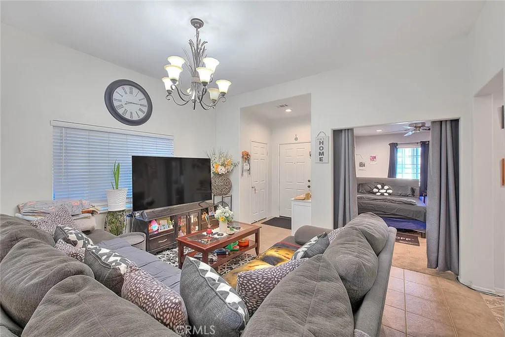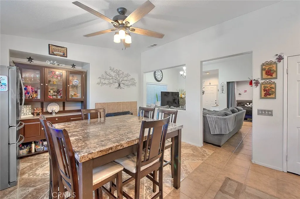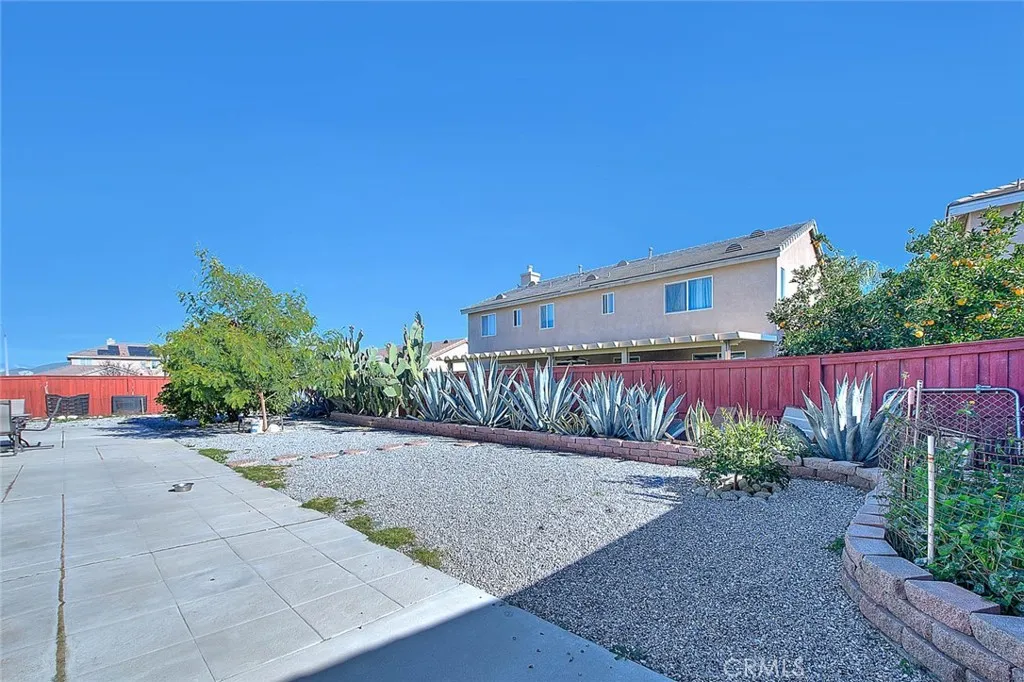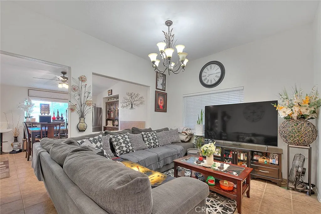 This beautiful single family residence features three bedrooms, two bathrooms, den-perfect for a home office or guest space and a three-car attached garage with direct access . Step inside to a bright, open kitchen with high ceilings, a large island, pantry, and plenty of cabinet space. Good size living room. Dining/family area with vaulted ceilings and a cozy fireplace. Tile flooring throughout the kitchen, living room, dining/family room, laundry area, and hallway. All bedrooms are good sized and with ceiling fans. The primary bedroom with high ceilings and a sliding door that opens directly to the backyard. Outdoors, youll find a large backyard complete with a patio slabperfect for entertainingand RV parking. This home shows great and is ready to move in!!