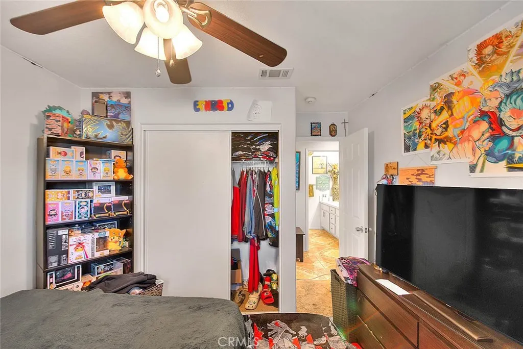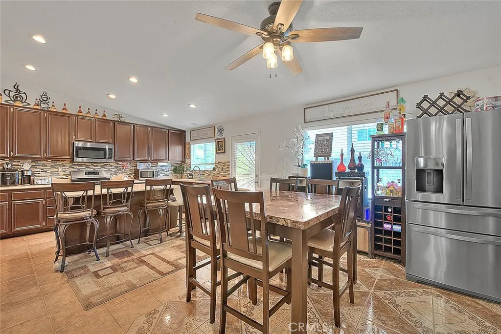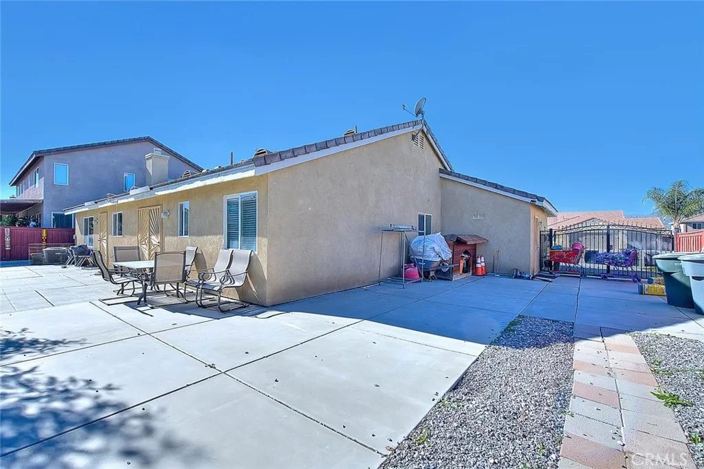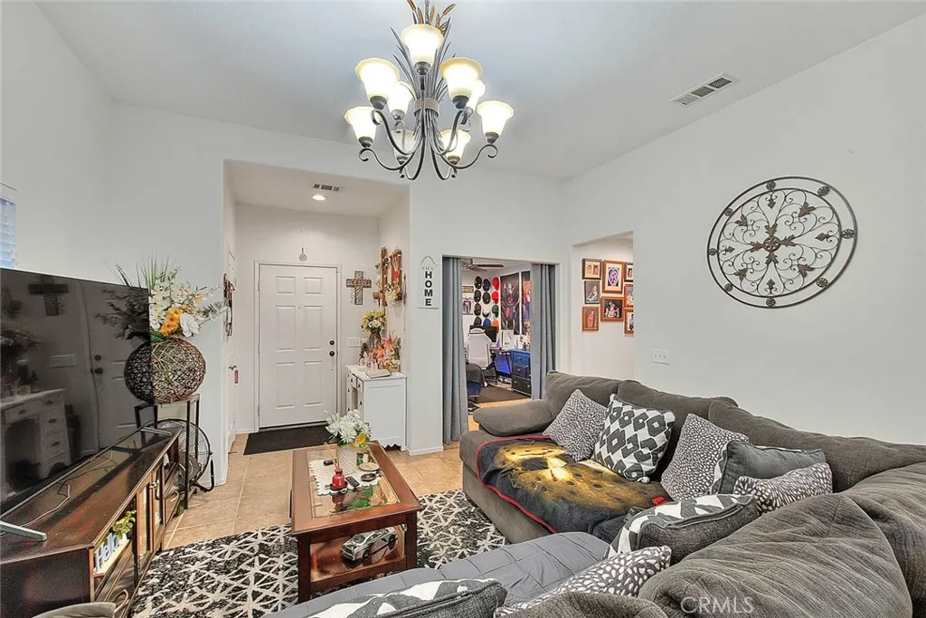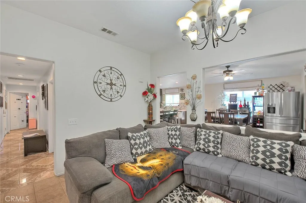 This beautiful single family residence features three bedrooms, two bathrooms, den-perfect for a home office or guest space and a three-car attached garage with direct access . Step inside to a bright, open kitchen with high ceilings, a large island, pantry, and plenty of cabinet space. Good size living room. Dining/family area with vaulted ceilings and a cozy fireplace. Tile flooring throughout the kitchen, living room, dining/family room, laundry area, and hallway. All bedrooms are good sized and with ceiling fans. The primary bedroom with high ceilings and a sliding door that opens directly to the backyard. Outdoors, youll find a large backyard complete with a patio slabperfect for entertainingand RV parking. This home shows great and is ready to move in!!
