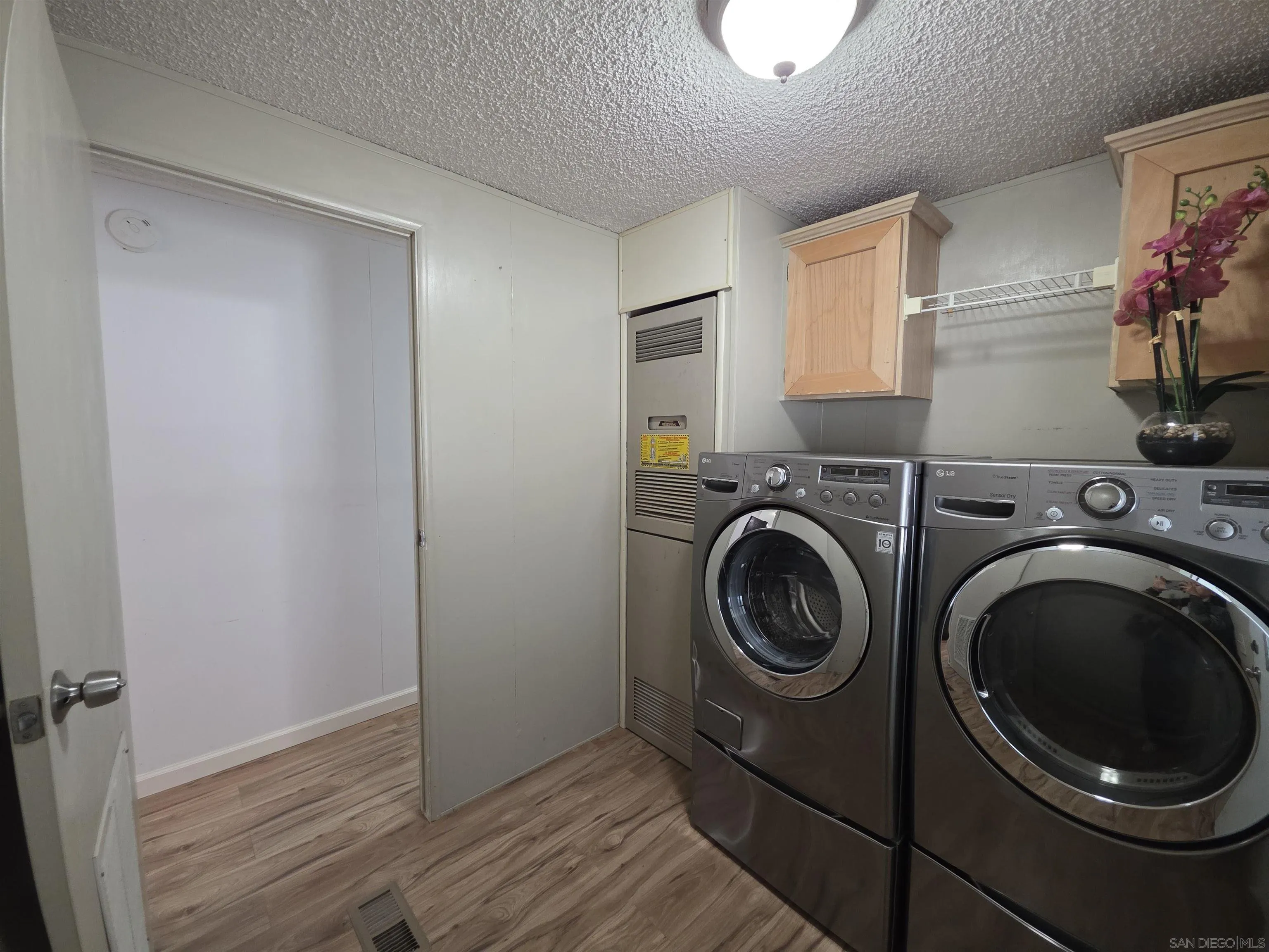 Manufactured home at The Cliffs: A 55+/21+ Community east of Mission Valley in Allied Garden. Enjoy comfort, convenience, and canyon views in this charming 1991 manufactured home located minutes from shops, restaurants, parks, and major highways. This move-in ready home features 2 bedrooms, 2 full baths, and a bonus private covered sunroom off the primary bedroom, great for plants, reading, or creating a cozy workspace. The living room, dining area, and hall have luxury vinyl plank flooring, and both bedrooms include soft carpet and remote-controlled ceiling fans. You’ll stay comfortable year-round with double-pane and bay windows, 2 mini split units system with heating and AC (1 in the living room and 1 in the primary bedroom), plus central heating throughout. The kitchen is bright and functional with a 5-burner gas stove, counter-depth stainless steel fridge, full-size dishwasher, and plenty of cabinet space. Vinyl flooring throughout and carpet in the 2 bedrooms. The indoor laundry room includes a full-size front-loading washer and gas dryer with extra storage. Step outside to a well-kept backyard filled with roses and greenery, along with two storage sheds for your tools and belongings. The 2 car tandem carport provides convenient parking, and guests parking are just around the corner. Tucked away in a quieter part of the community, away from the main clubhouse and pool, this home offers extra privacy while still giving you access to all The Cliffs amenities.