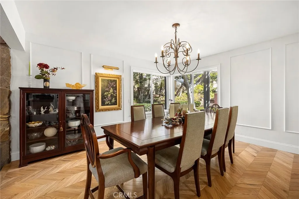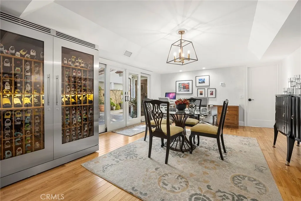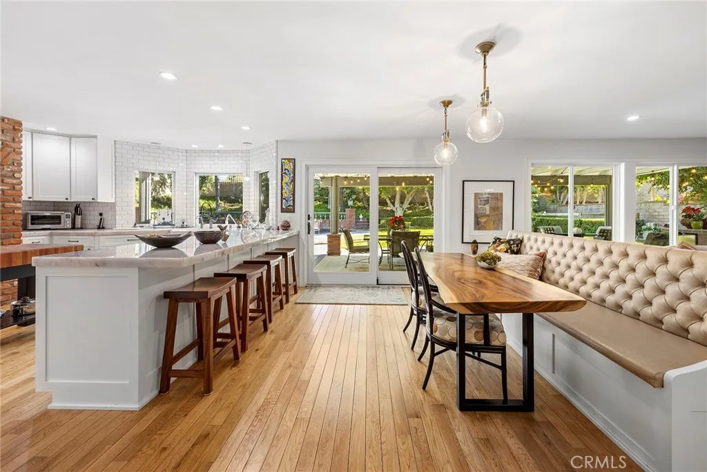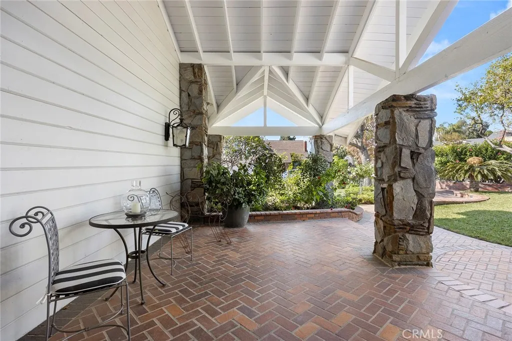 A serene oasis nestled within expansive grounds. Discover refined living in this elegant property set on a sprawling corner lot. The entrance is graced by a charming front courtyard with a fountain and brick walkways, leading to a welcoming covered porch and double door entry. The journey begins in a sophisticated foyer with soaring vaulted beam ceilings, surrounded by generous living and dining rooms, a classic staircase, and a sophisticated library. The expansive family room serves as a warm and inviting centerpiece, featuring a cozy brick fireplace and a convenient wet bar. Meals are a delight in the large breakfast nook, adjacent to the country kitchen, which is appointed with quartzite counters, pristine white shaker cabinetry, a built-in Viking refrigerator, Wolf double ovens, a warming drawer, and a gas cooktop. The kitchens large farm sink offers picturesque views of the impressive backyard. The main floor adds practicality with a bonus room, a full bath, and a laundry room. Upstairs, the primary suite is a serene sanctuary, complete with a brick fireplace, French doors leading to a spacious deck, a sitting area, and a luxurious bathroom with a custom multi-head shower and a broad double vanity. Two secondary bedrooms feature ample closet space and a shared, tastefully designed double vanity bath. An in-law suite with a private bath and sitting area further enhances comfort on the upper level. Outdoor living is equally captivating, with a large covered patio perfect for gatherings, extensive lawn areas, a magnificent pool and spa, and zoning for two horses. The prop