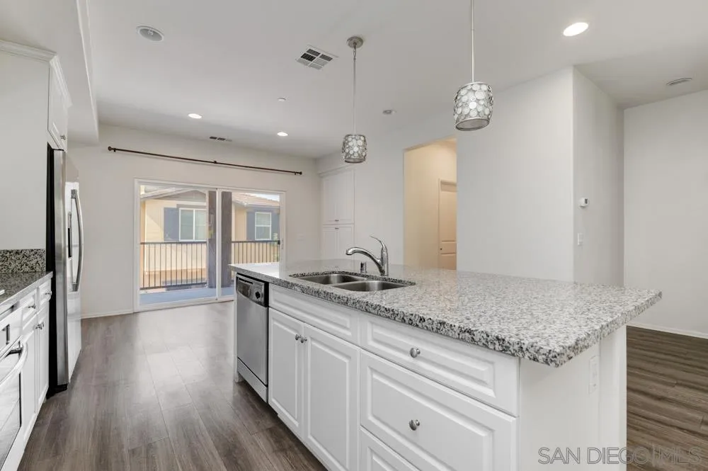 This gorgeous 3-level townhome in the highly desirable Mission Grove community of San Marcos is beautifully upgraded throughout. Showcasing granite countertops, crisp white cabinetry, custom paint, elegant laminate flooring, a 3-car garage & SOLAR. The open-concept layout offers a bonus room and a first-floor office that can easily function as a bedroom. The expansive kitchen flows into the impressive living room, ideal for family gatherings and entertaining, with a private patio just off the kitchen. Enjoy resort-style amenities including a community pool, BBQ areas & kids activities.
