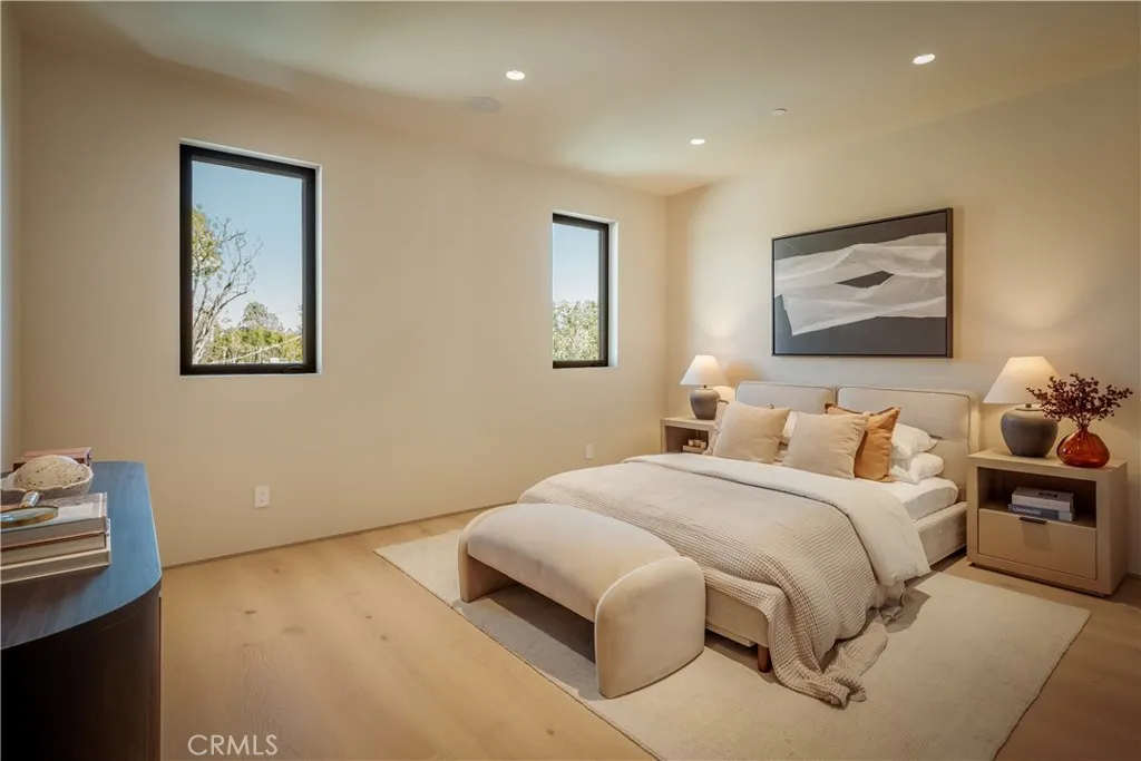 Brand new construction in prime Valley Village, offering approximately 6,500 square feet of refined living space on a prominent corner lot, located within the coveted Colfax Charter Elementary School district. The main residence features 5 spacious bedrooms and 5.5 bathrooms, designed with scale, functionality, and elevated finishes throughout. A striking modern exterior opens to expansive interiors flooded with natural light, wide-plank flooring, custom millwork, and seamless indoor-outdoor integration. The open-concept layout flows effortlessly from formal living and dining areas into a true chefs kitchen outfitted with premium appliances, an oversized statement island, custom cabinetry, and abundant storage. A separate prep kitchen provides additional workspace and catering flexibility, ideal for entertaining at a high level while keeping the main kitchen pristine. Designed for todays lifestyle, the home also includes a private office, perfect for remote work or executive use, and a dedicated theater room for an immersive at-home cinema experience. Upstairs, generously sized en-suite bedrooms offer comfort and privacy. The primary suite is a standout retreat, complete with a spa-inspired bath and expansive dual walk-in closets, thoughtfully designed his-and-hers spaces that elevate everyday living. The backyard delivers a true resort feel with a sleek pool, multiple lounge areas, covered patio space, and a built-in BBQ for effortless hosting. Positioned on a corner lot, the property maximizes both privacy and usable outdoor space. Completing the estate is a fully detache
