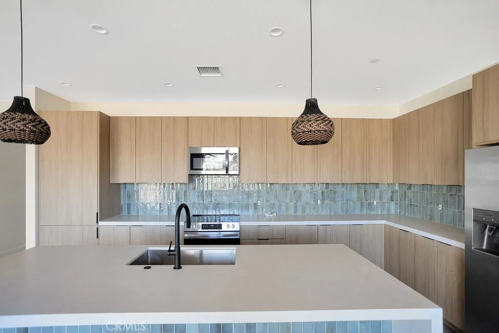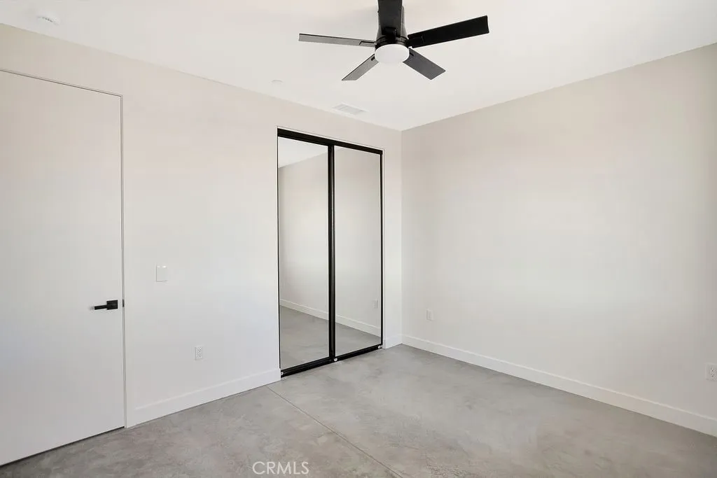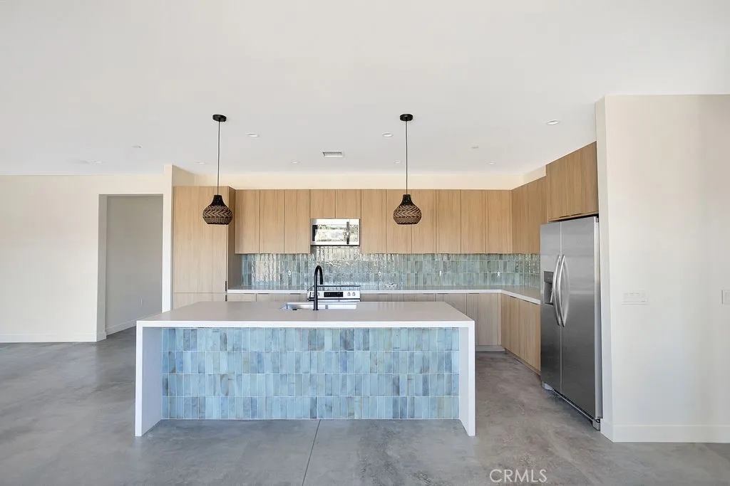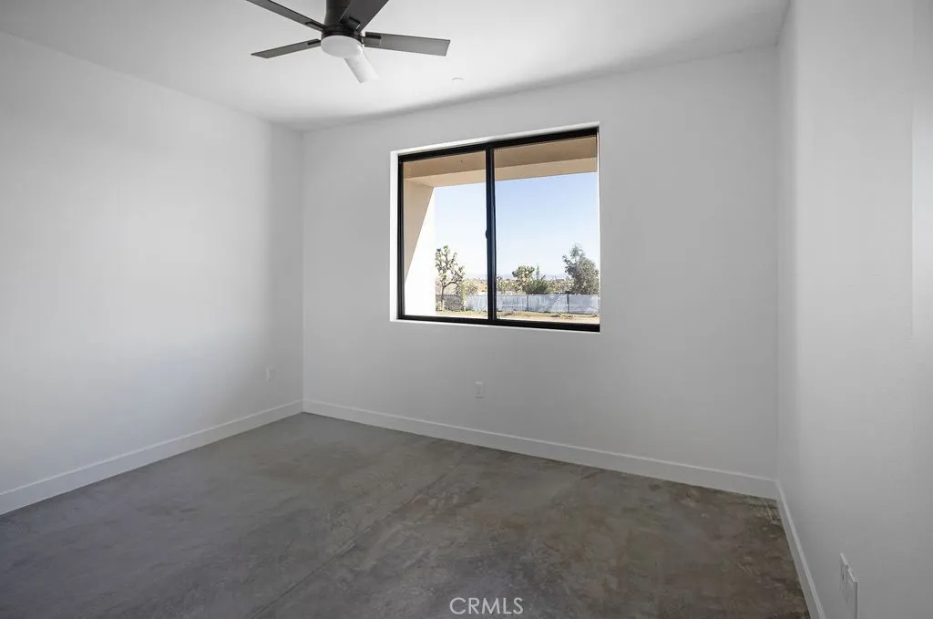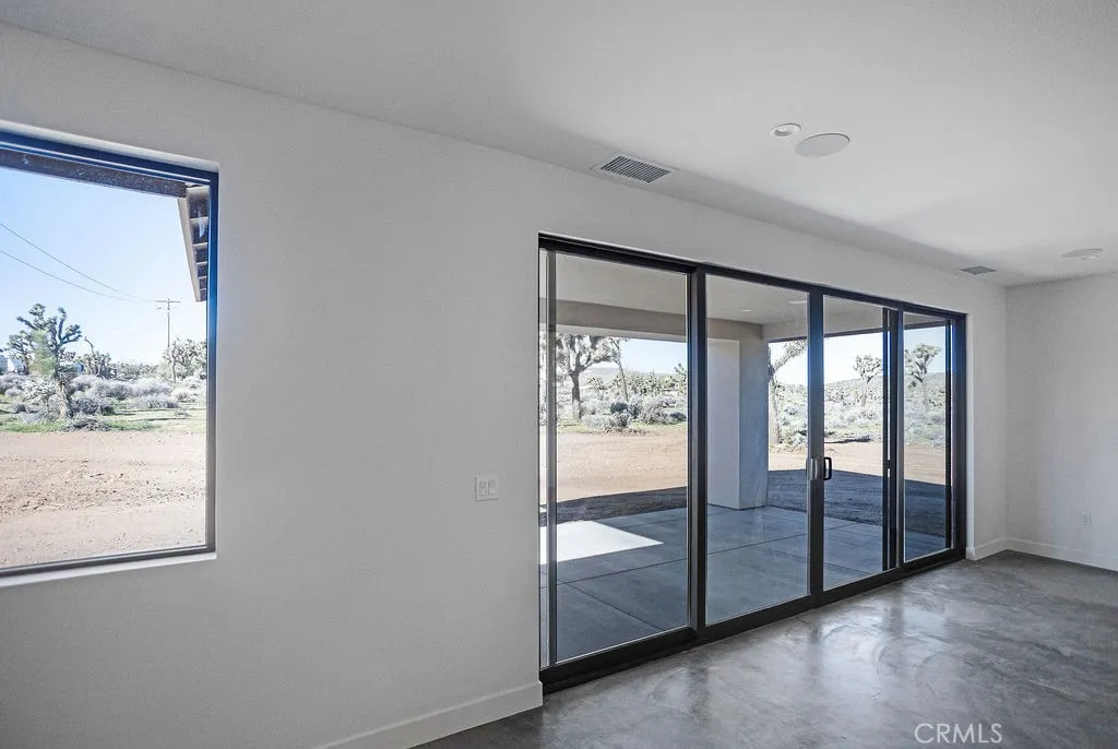New construction opportunity in Yucca Valleys desirable Buena Vista South, set on a spacious 1.25-acre parcel with open desert surroundings. Built by a well-known local builder, this 4-bedroom, 2-bath home showcases a clean, modern aesthetic with thoughtful upgrades throughout. Polished concrete floors run through the home, paired with recessed lighting and large windows that keep the interior bright and airy. The open-concept kitchen features stainless steel appliances, a generous center island, modern cabinetry, and pre-wired for WiFi / smart-home infrastructure, ideal for todays connected lifestyle. Large sliding glass doors extend the living space outdoors while framing wide desert views. Owned solar panels make this a smart choice! The primary suite offers a walk-in closet and a contemporary bath with a walk-in shower and dual-sink vanity. Additional bedrooms are well-sized and versatile for guests, office space, or creative use. Modern finishes, clean lines, and efficient design highlight the appeal of a brand-new build. Conveniently located near Yucca Valley shops, dining, and community events, with easy access to farmers markets, live music, art events, and nearby hiking and desert recreation. A rare new construction home on usable acreage with modern design and local craftsmanship.