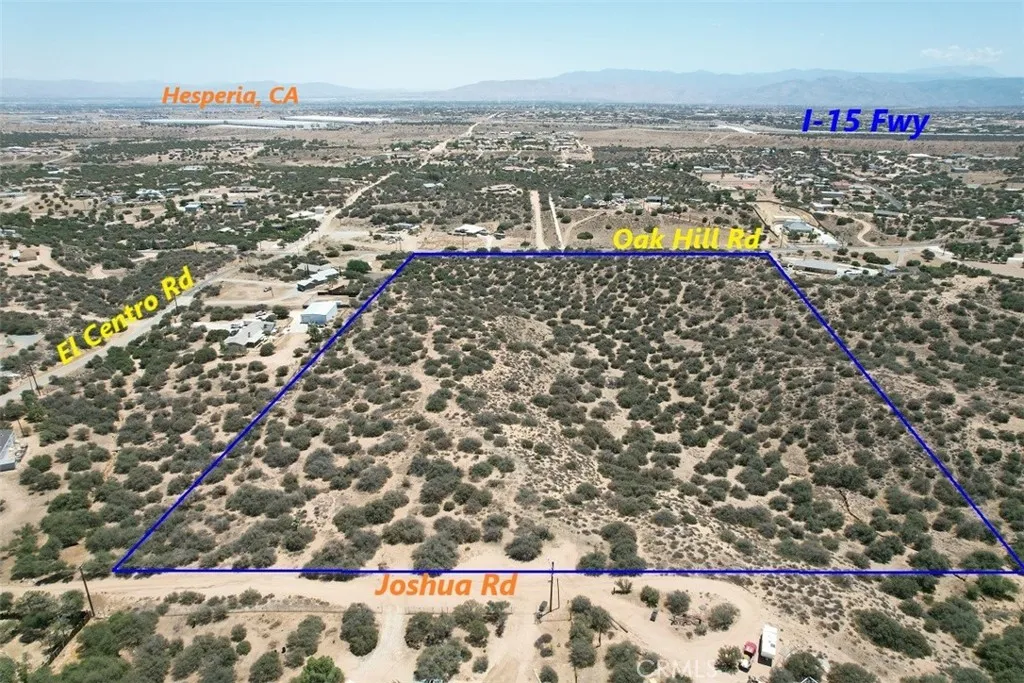 25 ACRE PRIME LAND in Oak Hills, California, with water, power, and gas on the street. Nestled between paved Oak Hill Rd with 830ft frontage and Joshua Road 660+/-ft frontage, just a short 3-mile drive to the I-15 Fwy North/South Interchange at Ranchero Rd, and a short drive to all the amenities in all the High Desert. This property can be subdivided into 10-2.5 acre or 5-5 acre buildable lots for a multi-unit development, or proceed with your plans and build out your exclusive dream castle at The Upper 4+/- acre flat Deck at the northwest corner of this lot for a large Ranch type setting with rolling hills, and breath taking views of the mountains which makes it one of the best building paths in the area, and private space. Custom Homes surround this location, providing the perfect balance of privacy and community, just minutes away from the mall, grocery stores, other major retail stores, and Schools. Don't miss out on making this your dream Home or project.